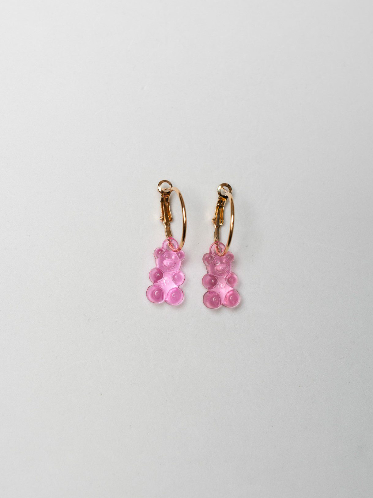 Aros argolla con dije de oso de goma translúcido de acrílico. Un accesorio tierno y divertido con un toque de color.