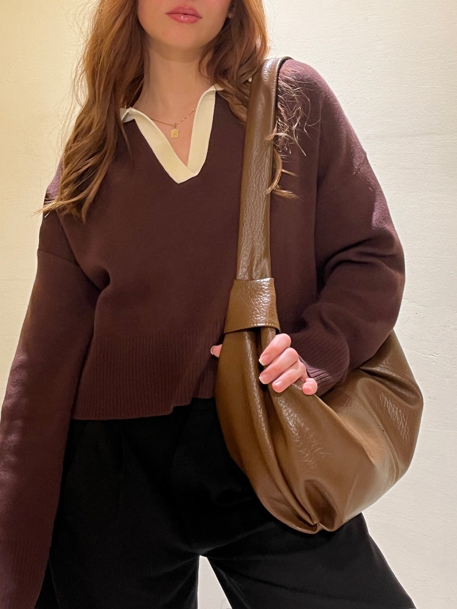 Confeccionada en gamuza suave y de alta calidad en un intemporal tono negro, esta cartera se distingue por su forma orgánica de media luna y su diseño relajado, que se adapta perfectamente a tu cuerpo. Su textura aterciopelada y el cierre superior con cremallera aseguran que tus esenciales estén seguros, mientras su estética desestructurada le da un aire bohemio y chic al mismo tiempo.
