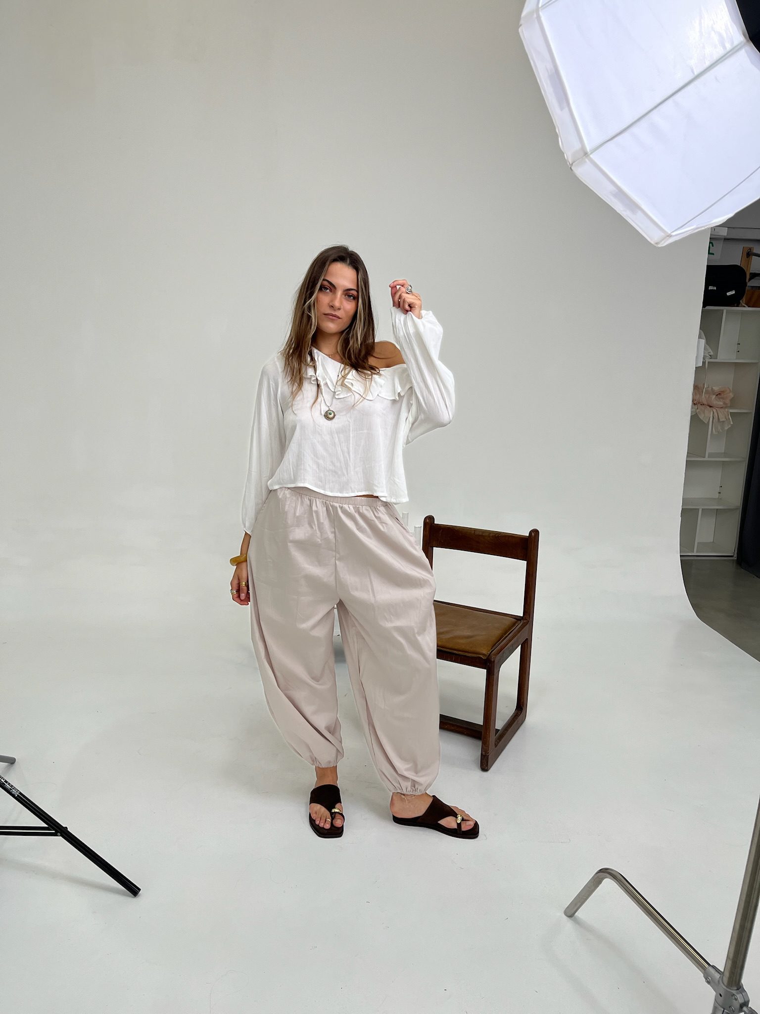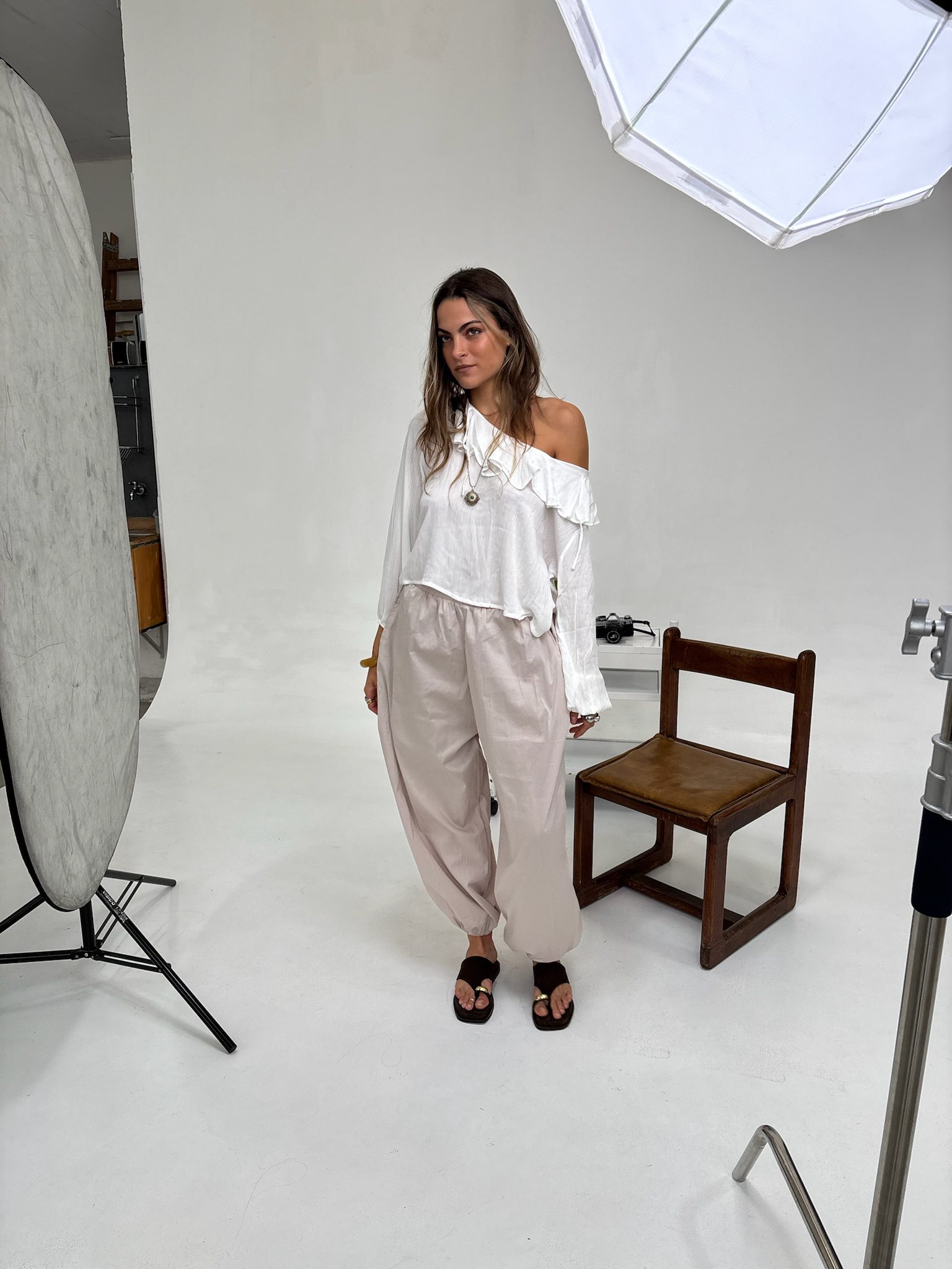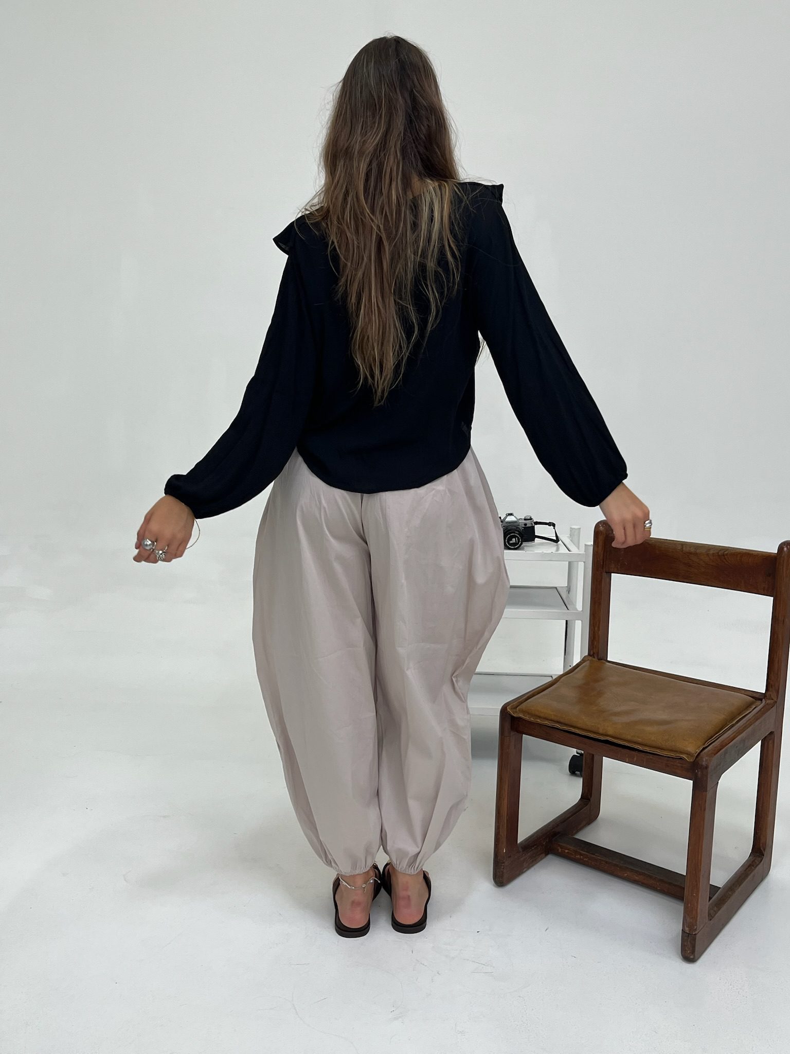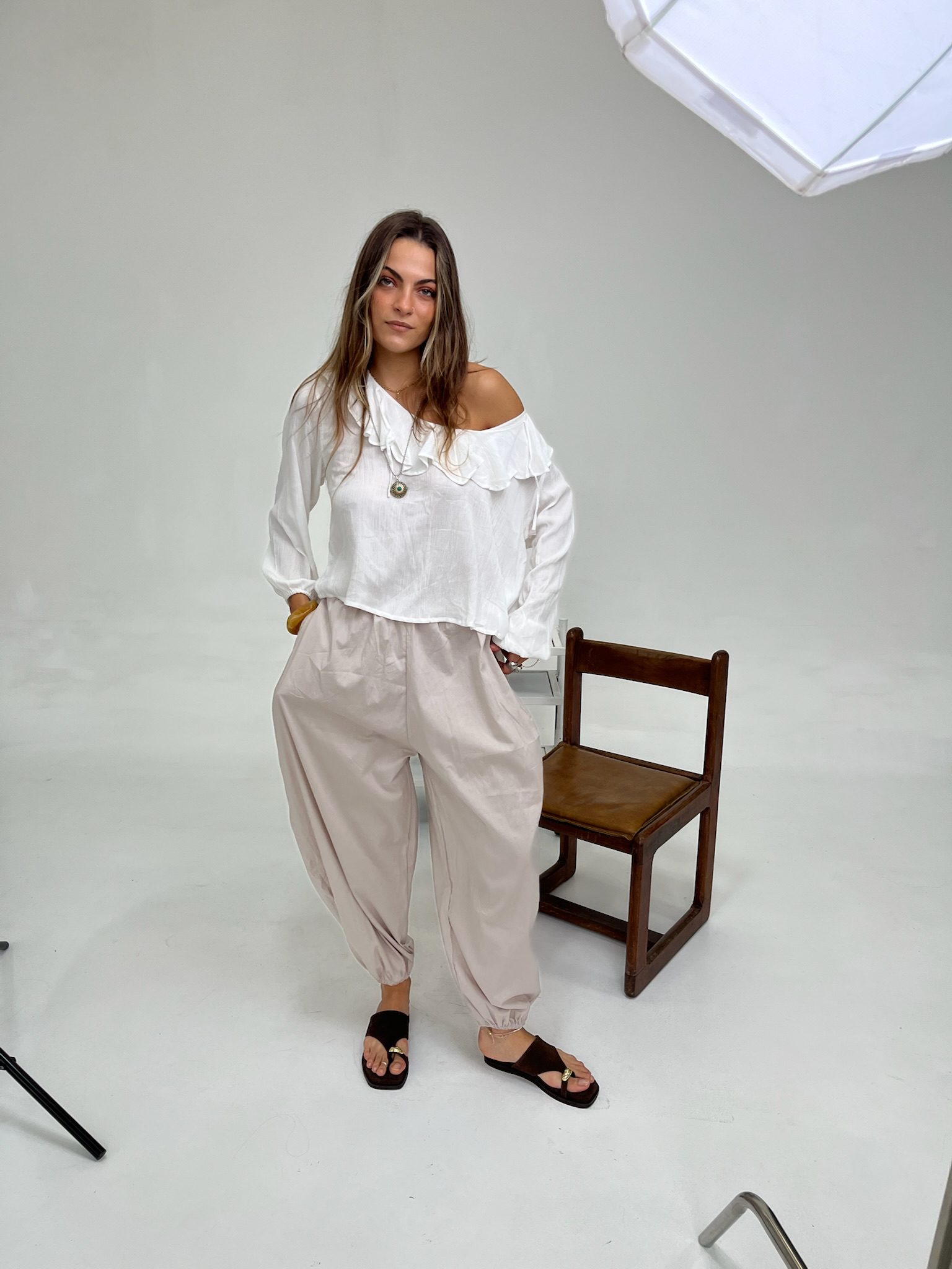 La BLUSA CAMERON es la pieza que estabas buscando para añadir un aire sofisticado y romántico a tu colección. El volado amplio en el escote y el lazo ajustable le dan un fit delicado y femenino, mientras que el color negro la mantiene versátil. Su tejido ligero y caída fluida garantiza comodidad total.
