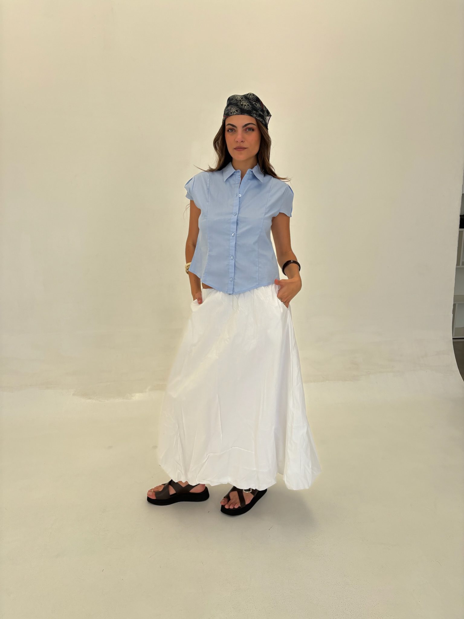 La CAMISA ANISH es la prenda de poplin esencial con un diseño moderno y estructurado. Confeccionada en poplin liso, presenta un elegante corte entallado que favorece la silueta. Las pinzas estratégicas en los hombros brindan una estructura definida, y el largo de la manga corta la hace ideal para el workwear o looks pulidos.