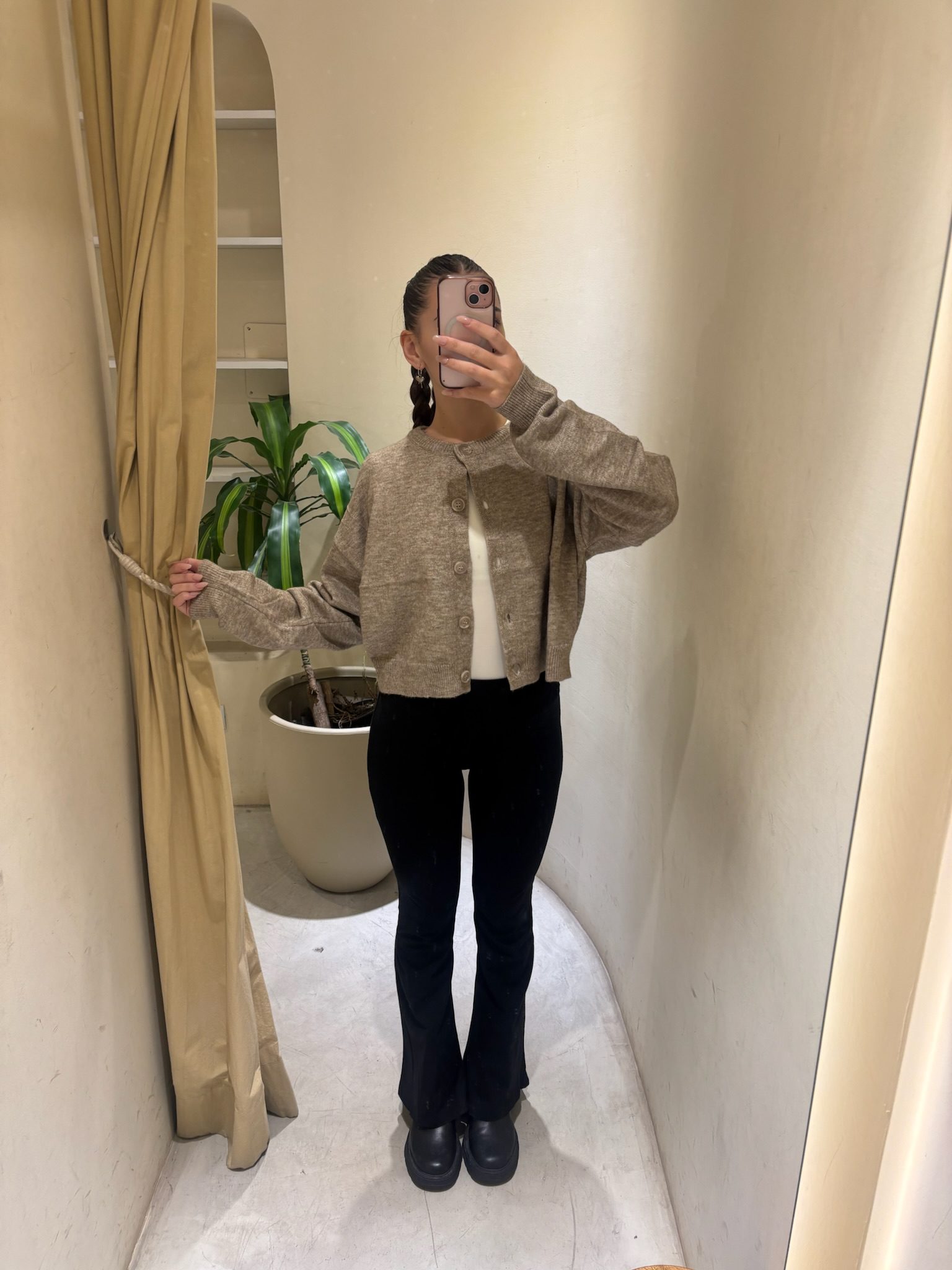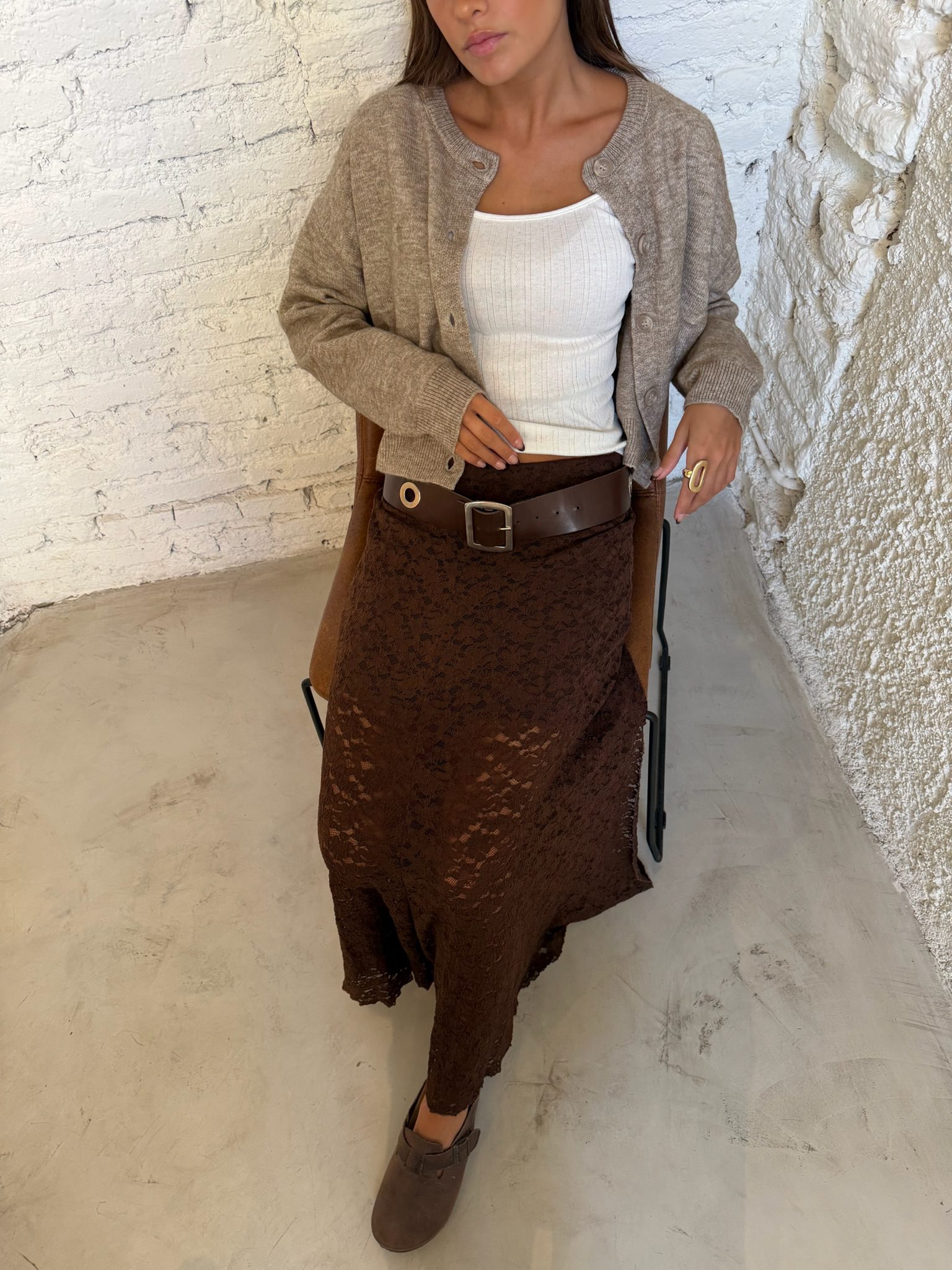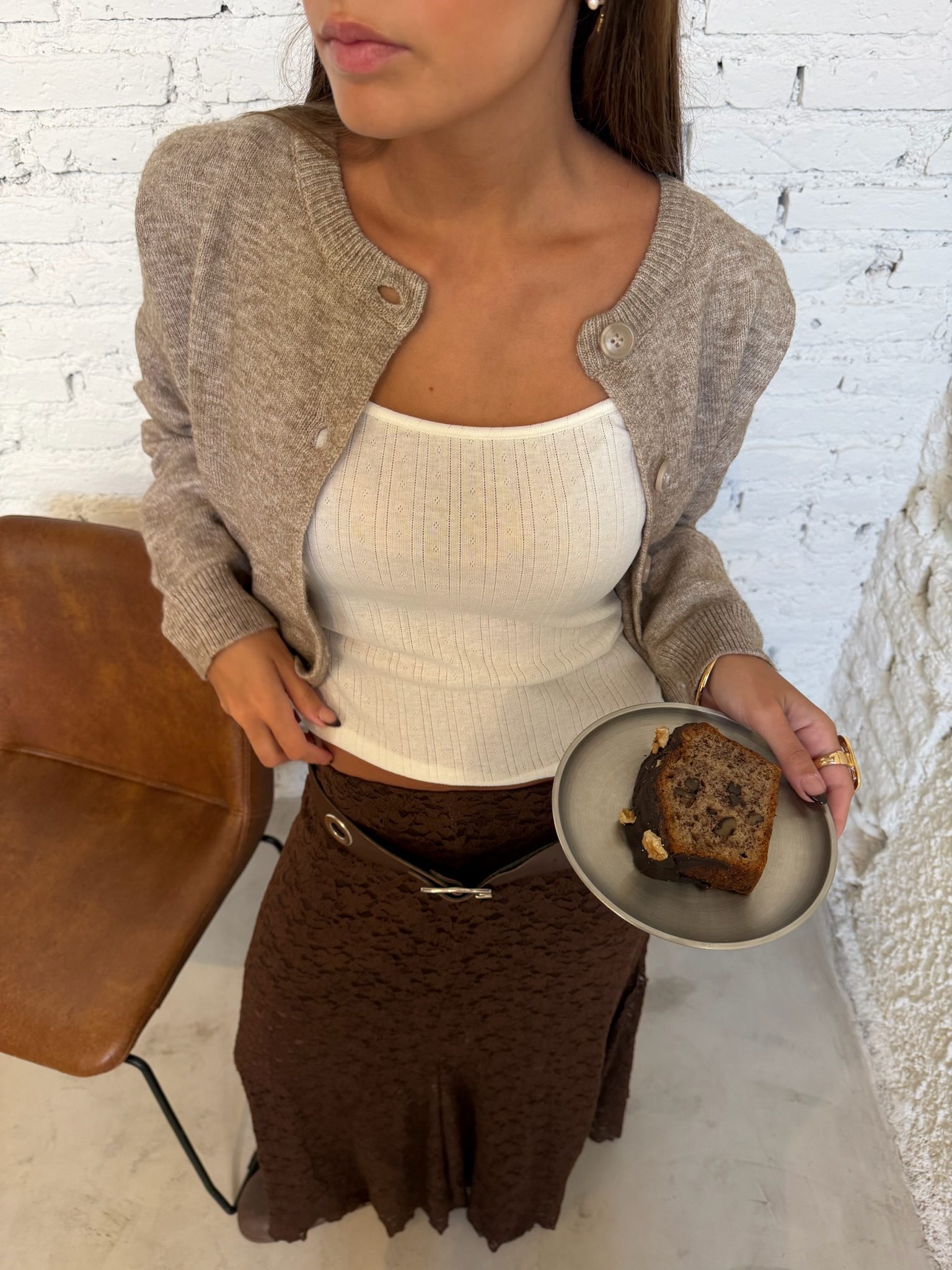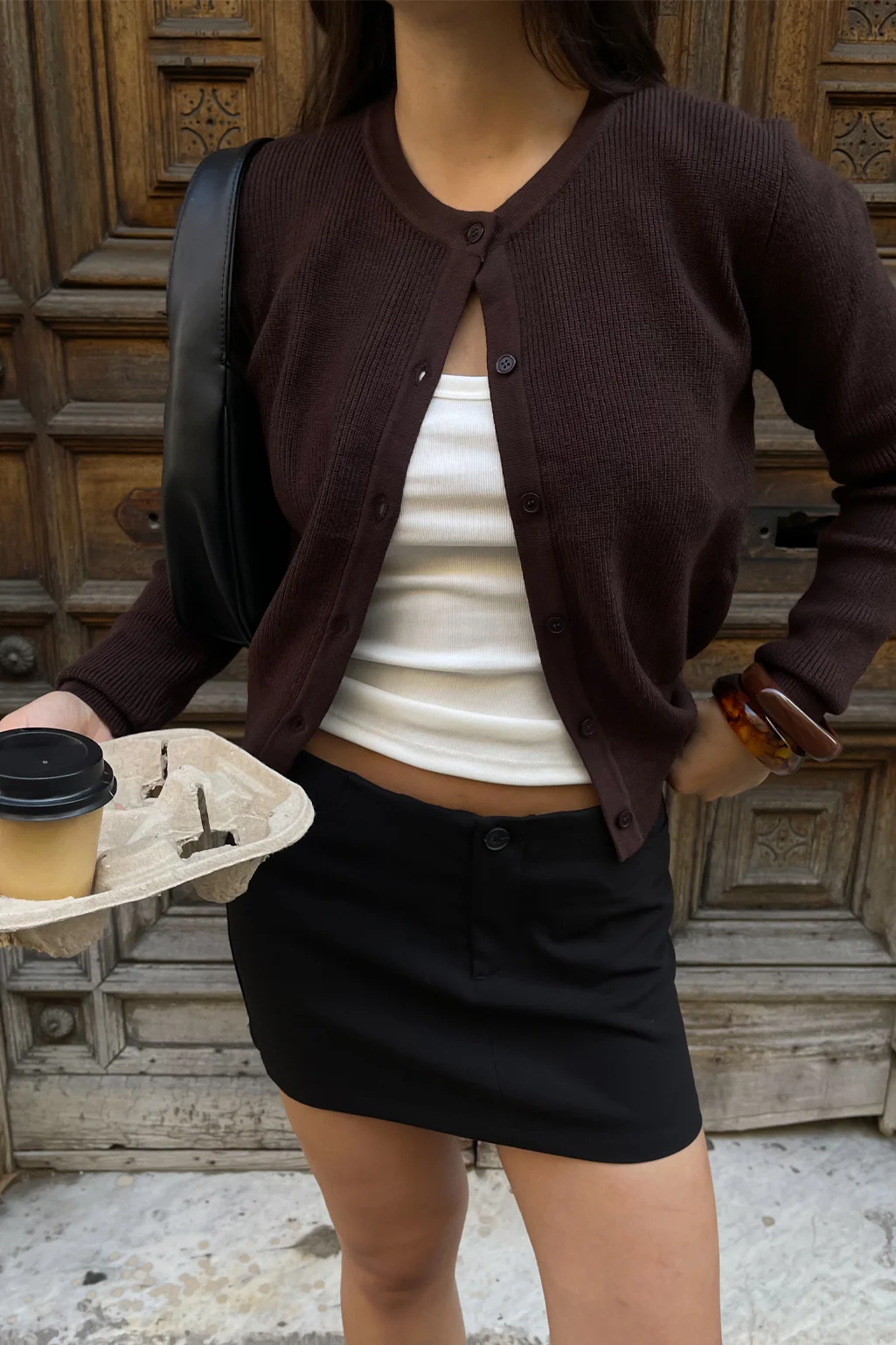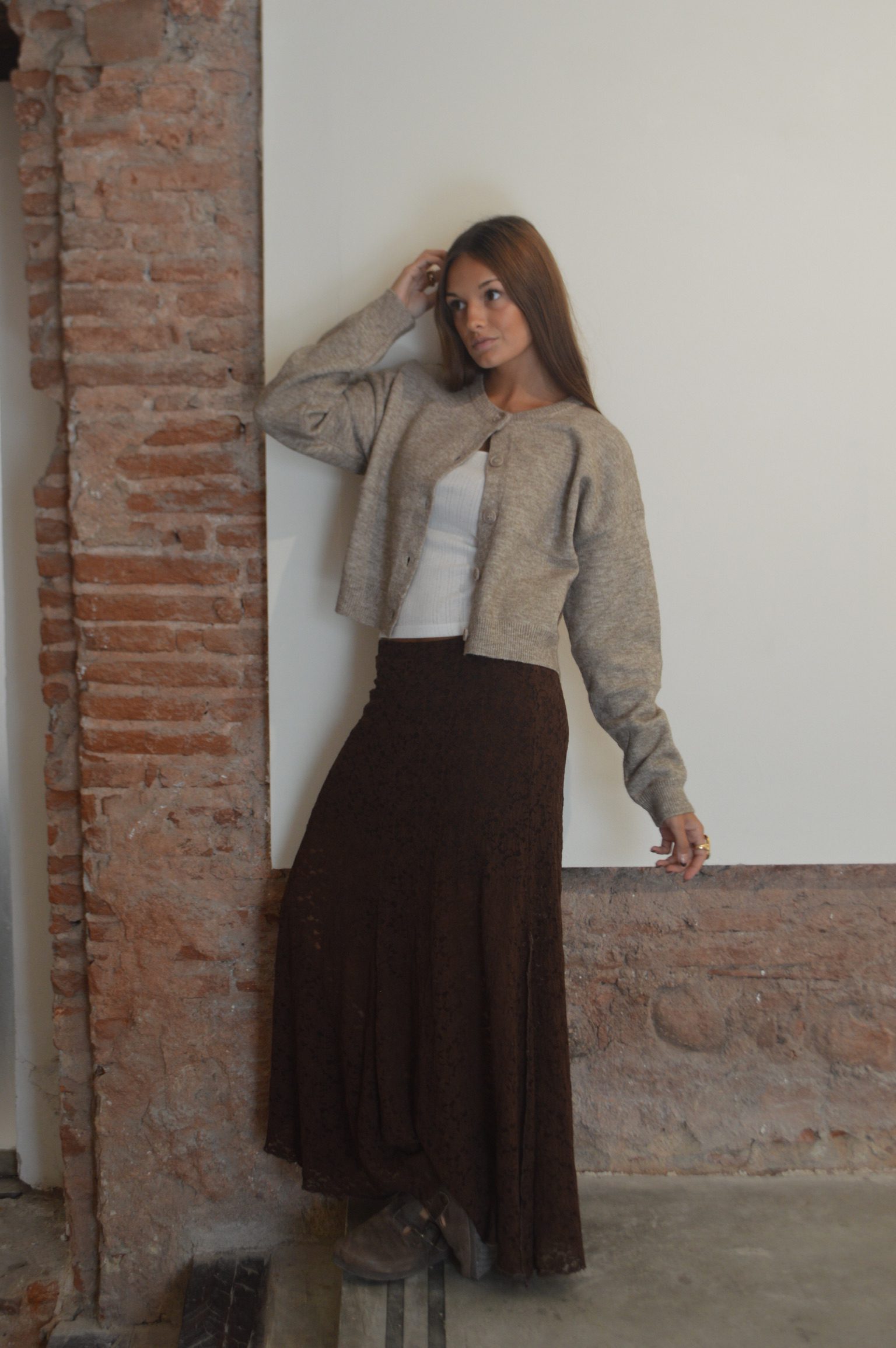 El Cardigan Básico es la prenda esencial para el layering de esta temporada. Confeccionado en un tejido de punto suave y con cuerpo, presenta un diseño clásico de cuello redondo y abotonadura frontal al tono. Su corte entallado en la cintura y puños definidos crean una silueta limpia y cómoda, ideal para usar cerrado como prenda única o abierto sobre tus tops favoritos.