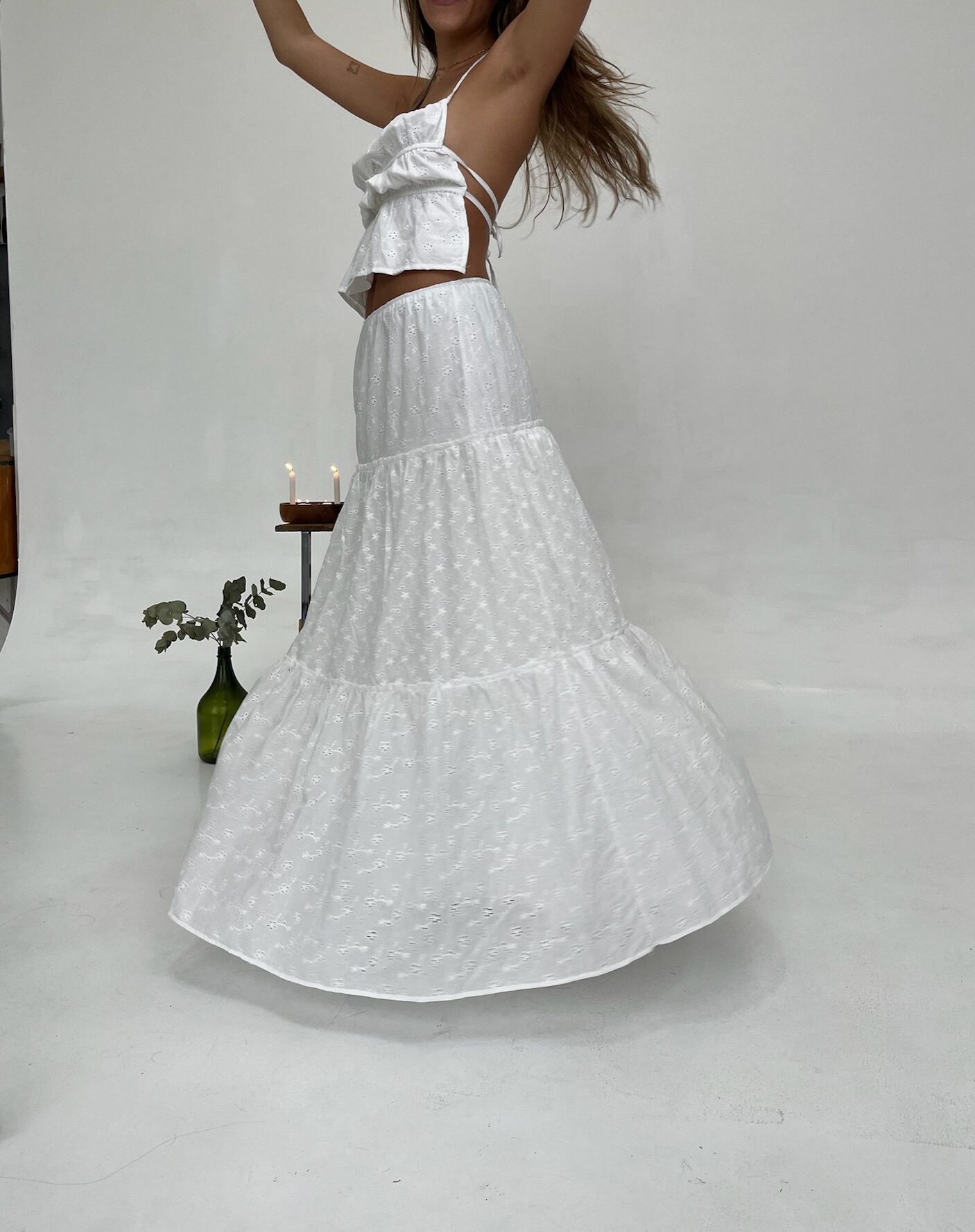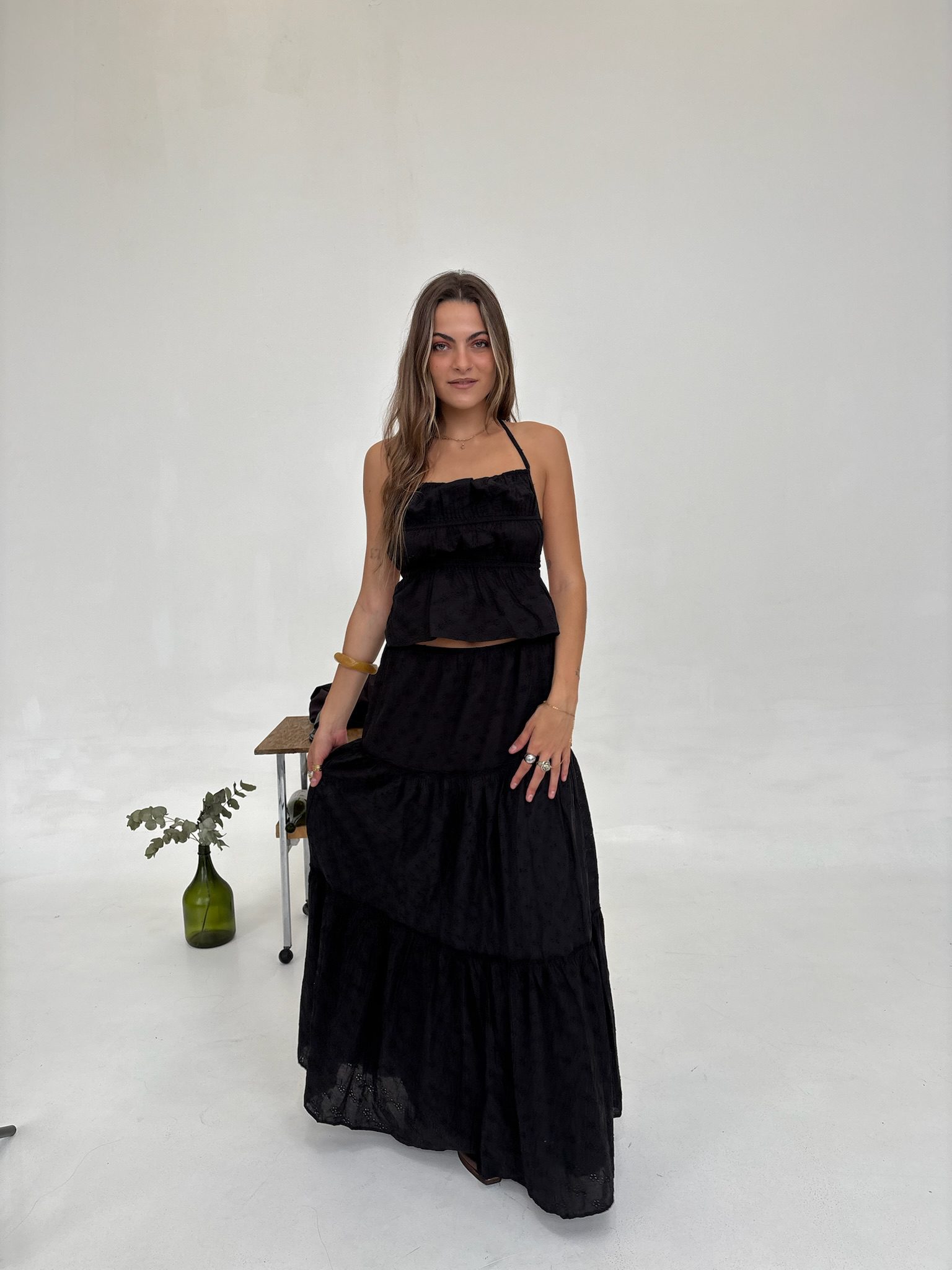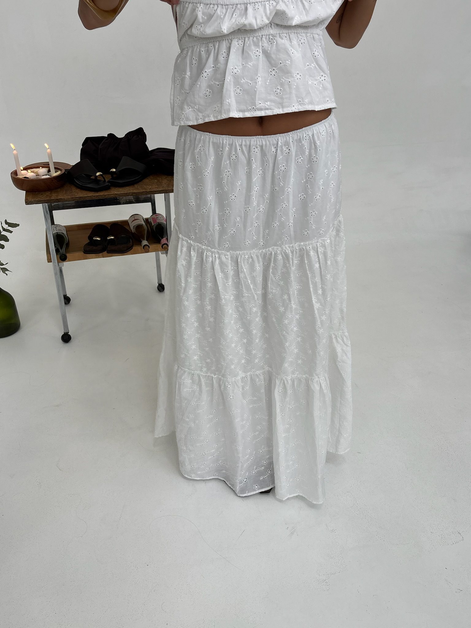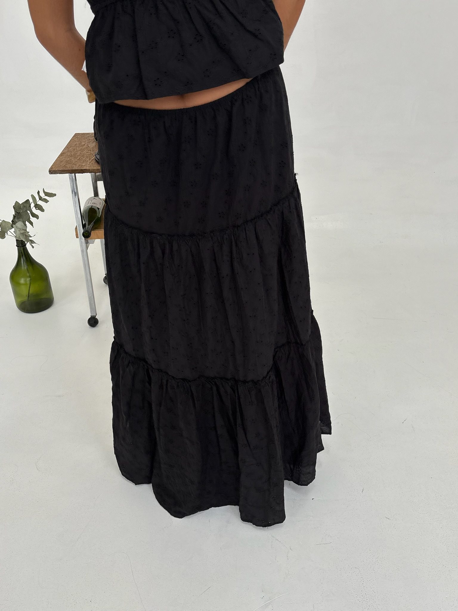 La MAXI FALDA AMAPOLA es la pieza clave para un estilo Boho Chic en tendencia. Confeccionada en exquisito tejido Broderie (bordado calado), esta falda larga presenta un diseño de volados en capas que ofrecen movimiento y volumen. Su cintura elástica garantiza un calce cómodo y favorecedor. Disponible en Blanco y Negro.