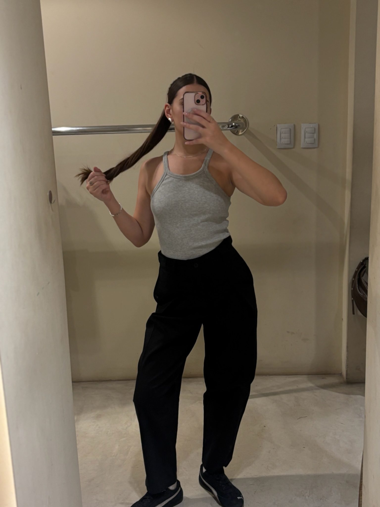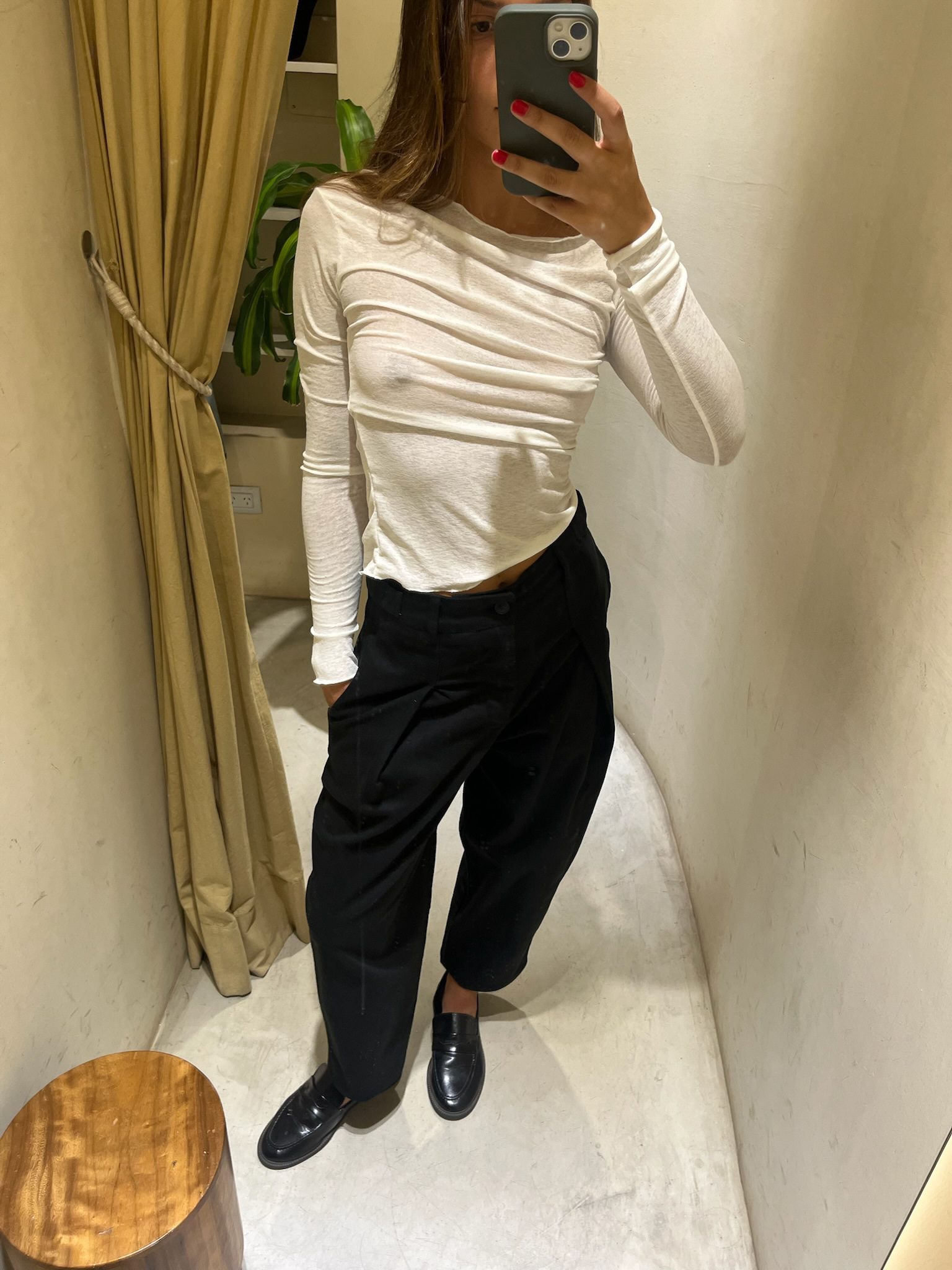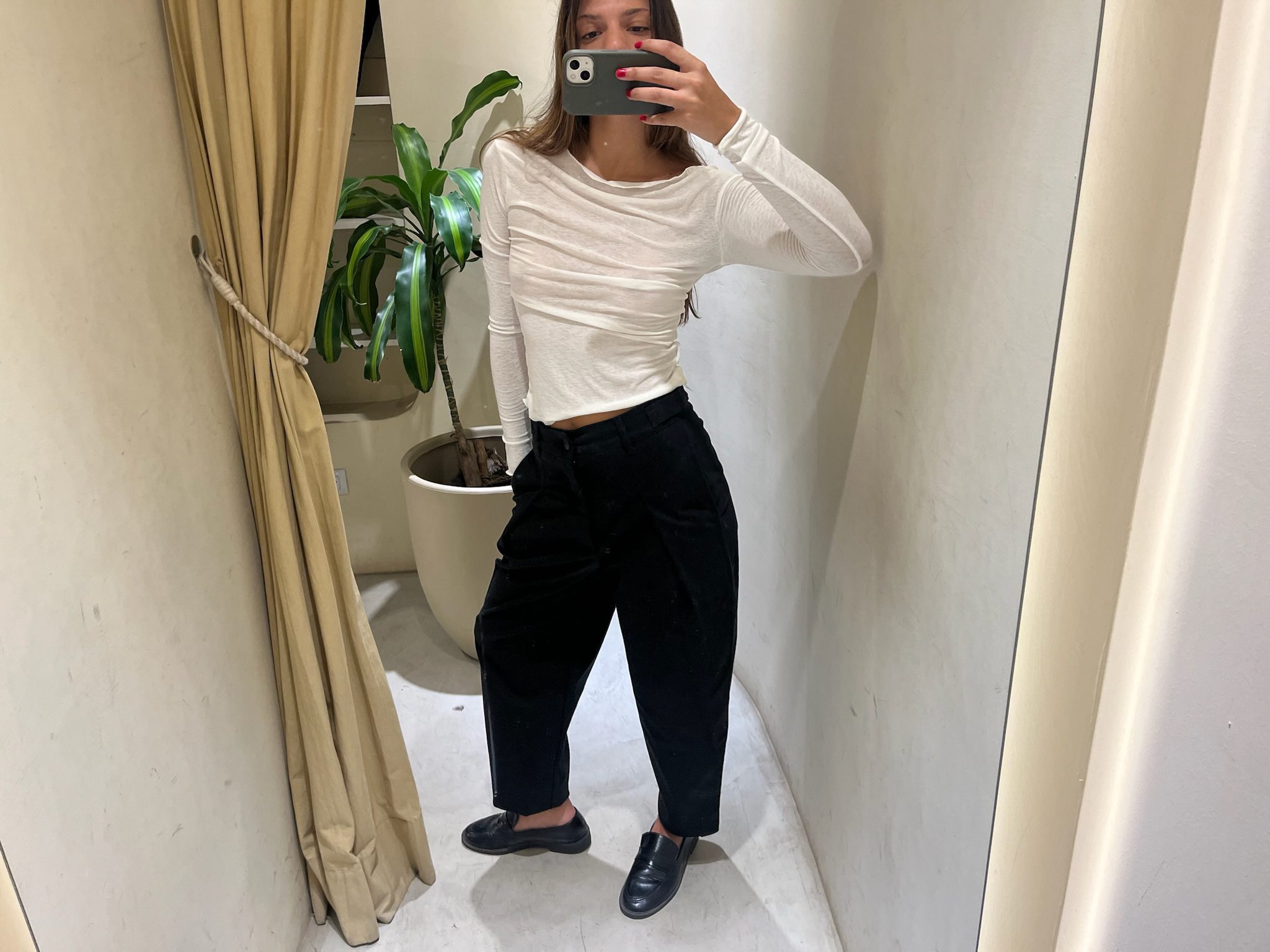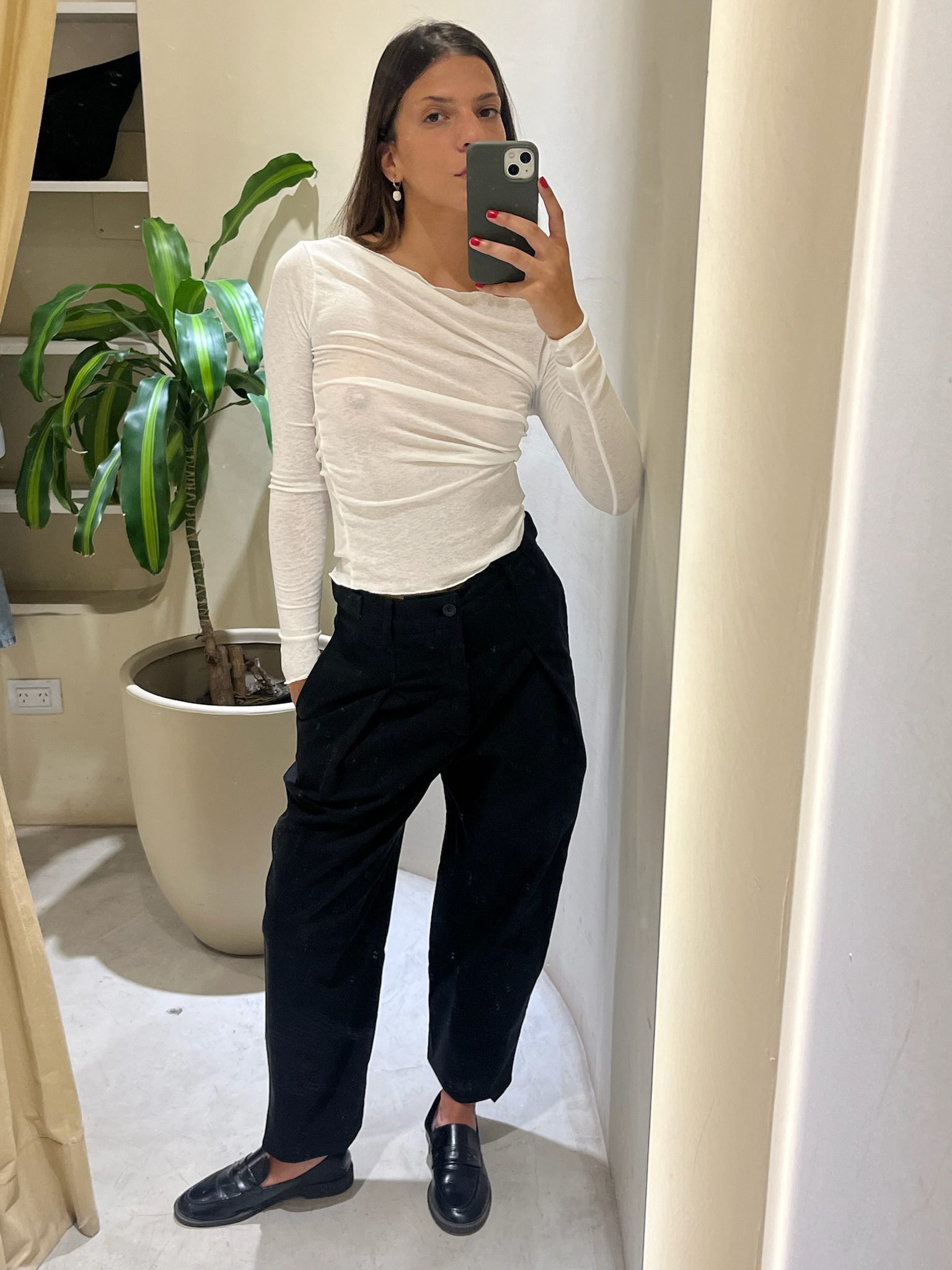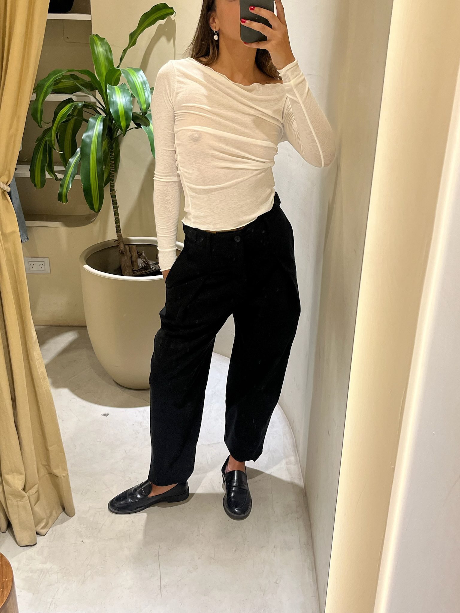 Pantalón de corte sastrero moderno confeccionado en textil de media estación con excelente caída. Su diseño destaca por las pinzas delanteras que aportan amplitud en la cadera y una estructura elegante que se desliza hacia la bota. Cuenta con tiro alto, pretina reforzada con pasacintos y bolsillos laterales. Una prenda ultra versátil, diseñada para lograr un look impecable tanto con zapatillas y remera como con zapatos y blazer.