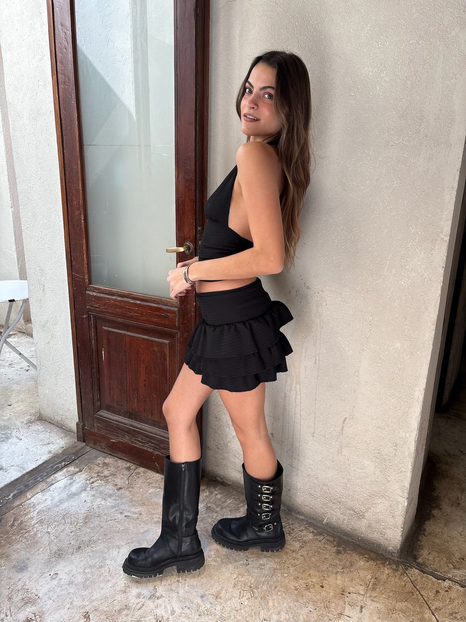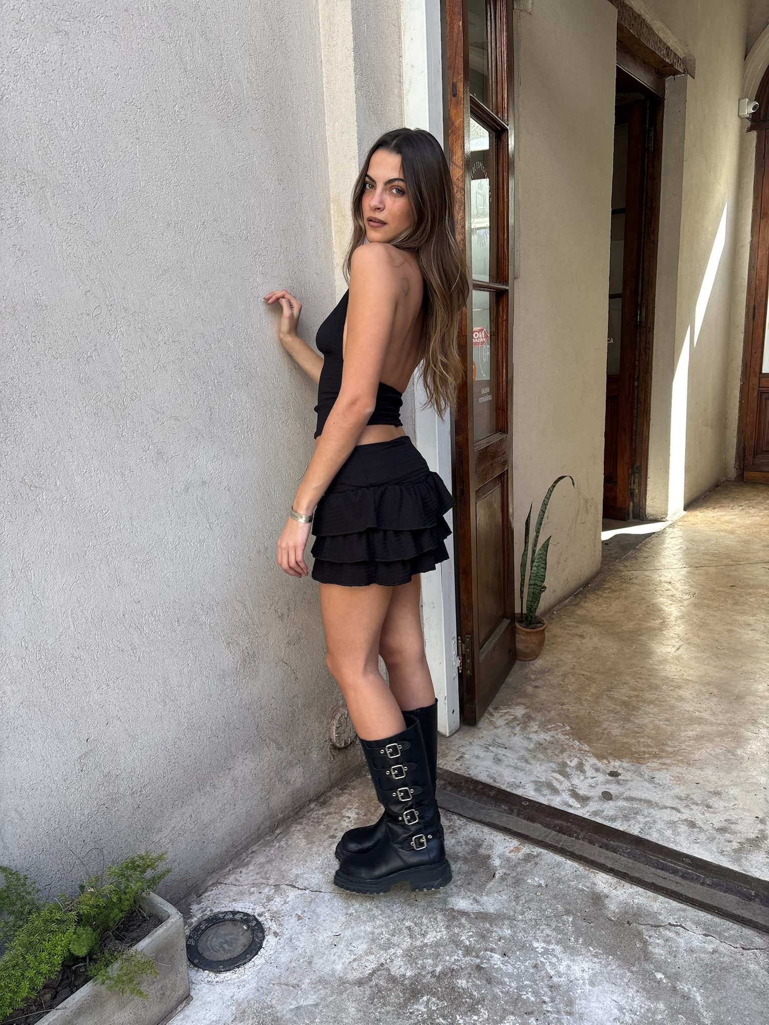 La Pollera Ambar es una prenda corta con volados que se adapta a diferentes estilos. Su diseño presenta múltiples capas de volados que le otorgan movimiento y una textura distintiva. Es una falda versátil, ideal para combinar con diversas blusas, tops o remeras, adaptándose a un look informal o más arreglado.