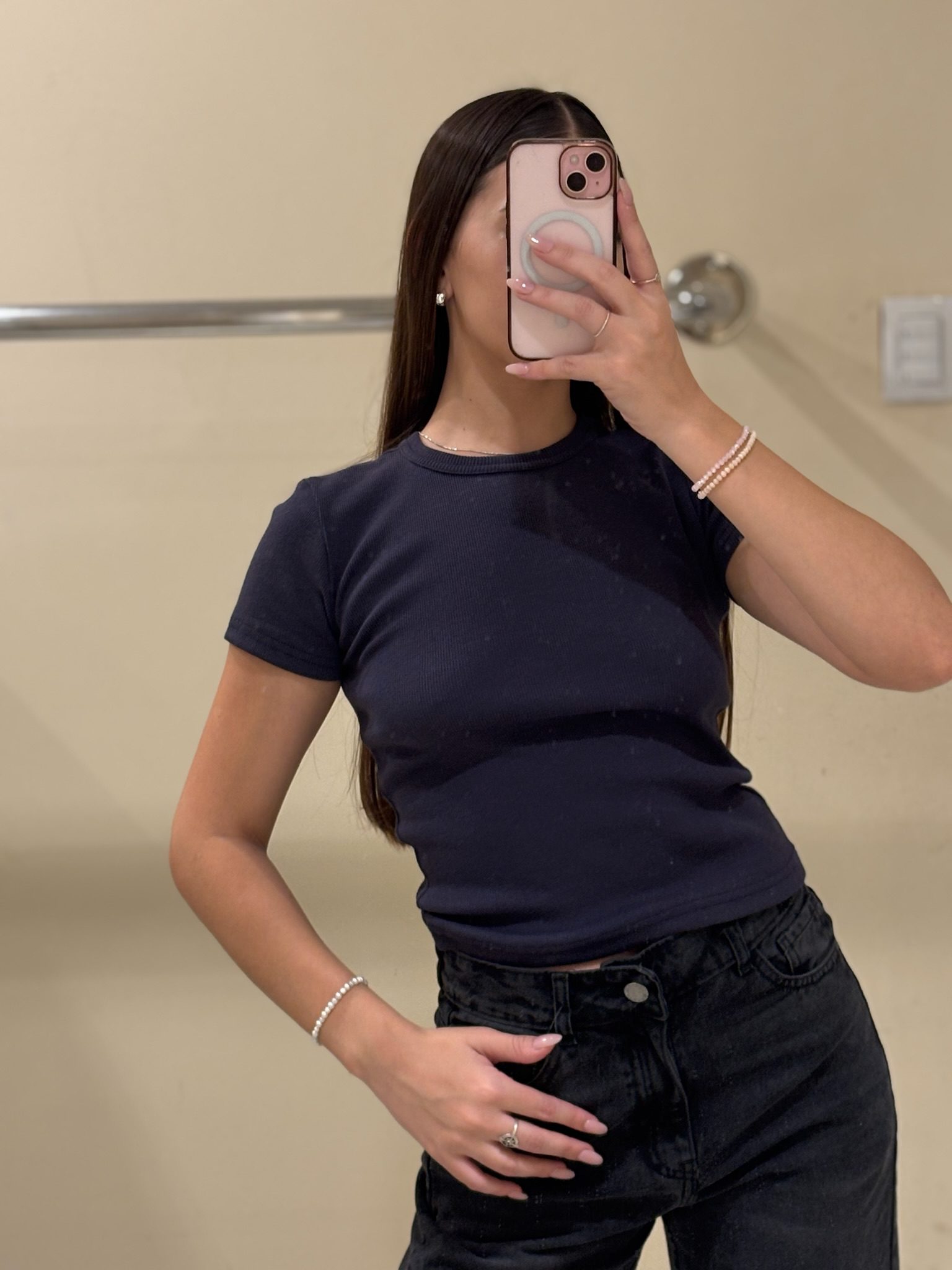 Remera de calce slim fit confeccionada en morley premium de algodón con elastano, una textura que se adapta suavemente al cuerpo resaltando la silueta. El modelo Tyla destaca por su diseño minimalista de cuello redondo y mangas cortas, ideal para usar como prenda base o protagonista de un look relajado. Su textil de alta calidad evita deformaciones y garantiza un tacto suave durante todo el día.