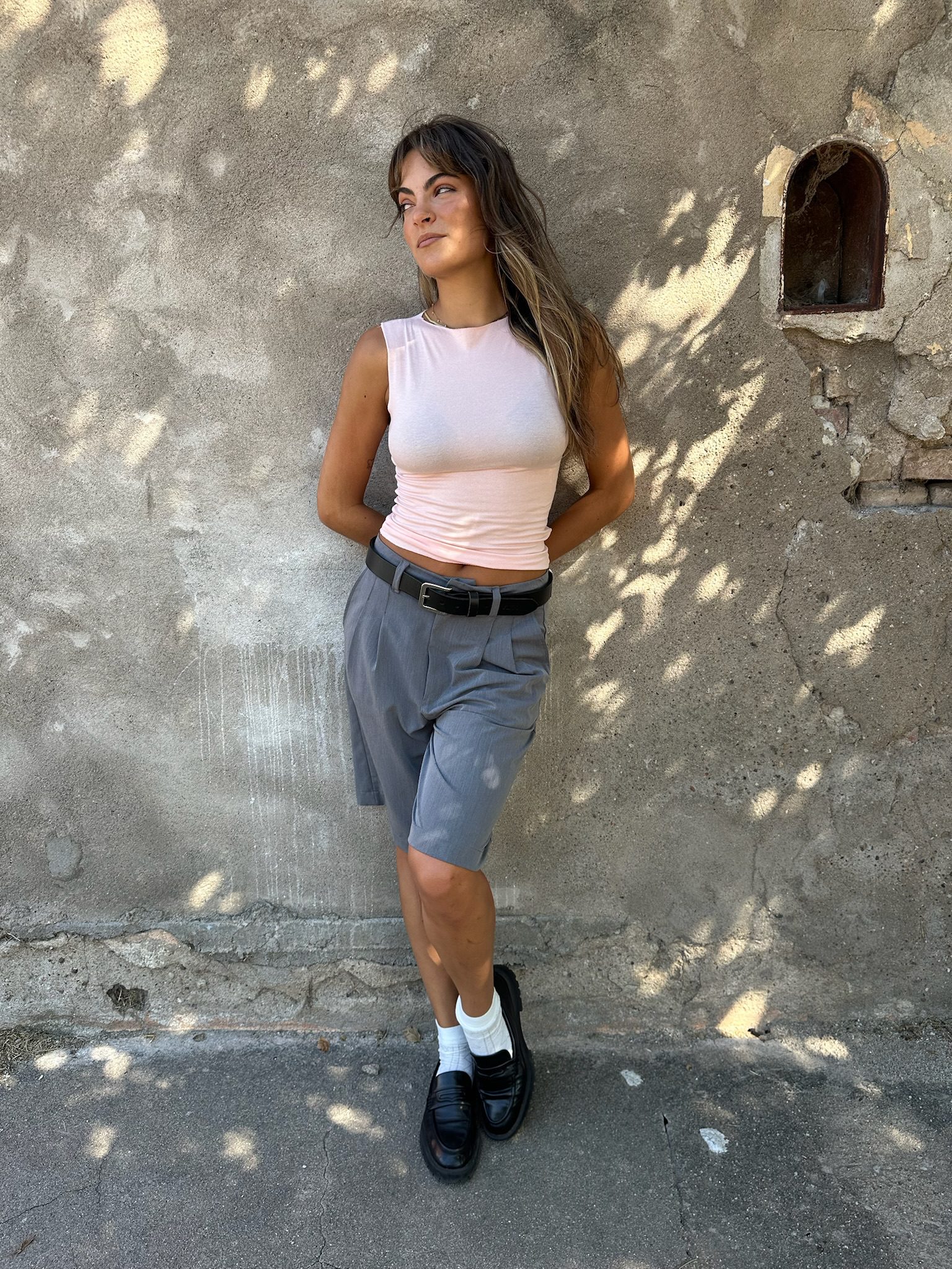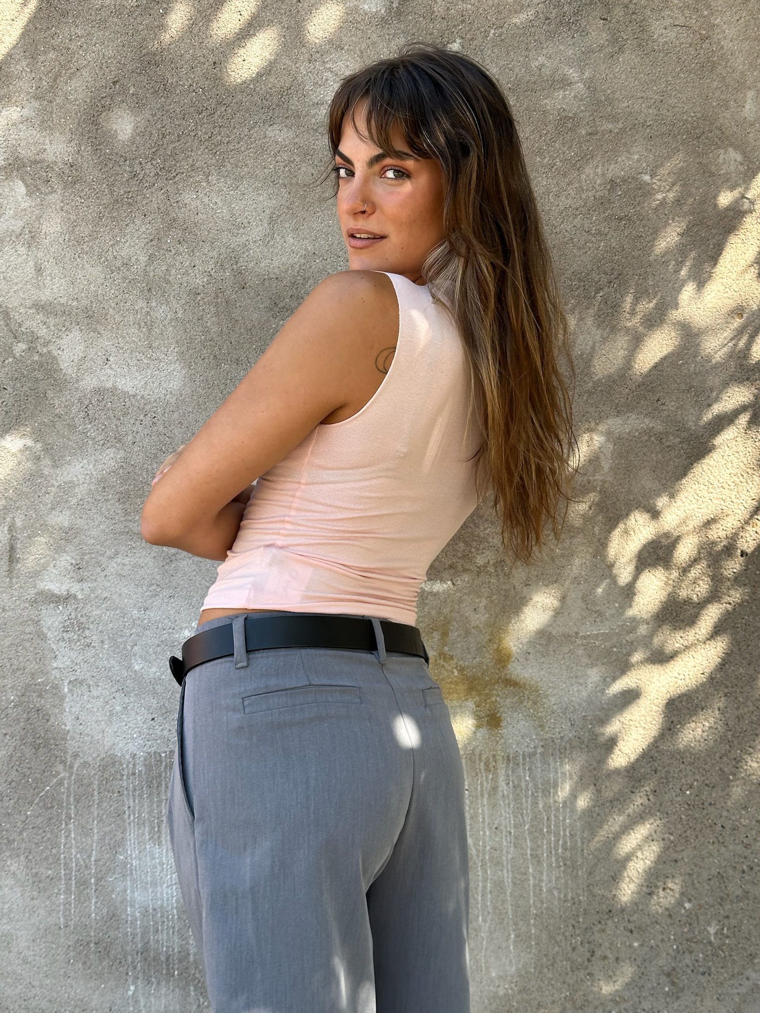 Belén mide 1,74 m, sus medidas son 80–57–88 y usa talle S en colores blanco, gris y negro.