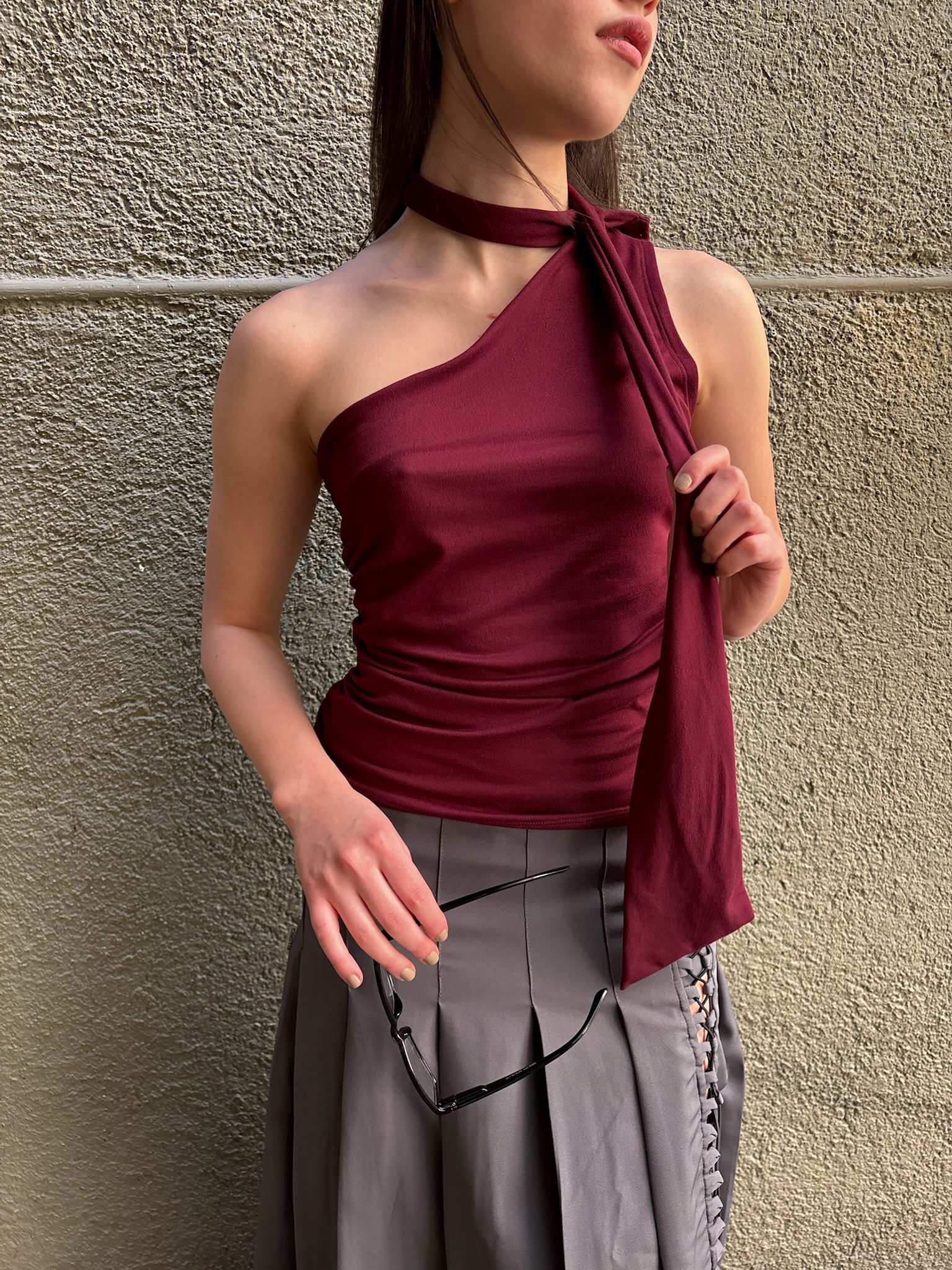 • Diseño: Asimétrico con tira anudable para un toque único.