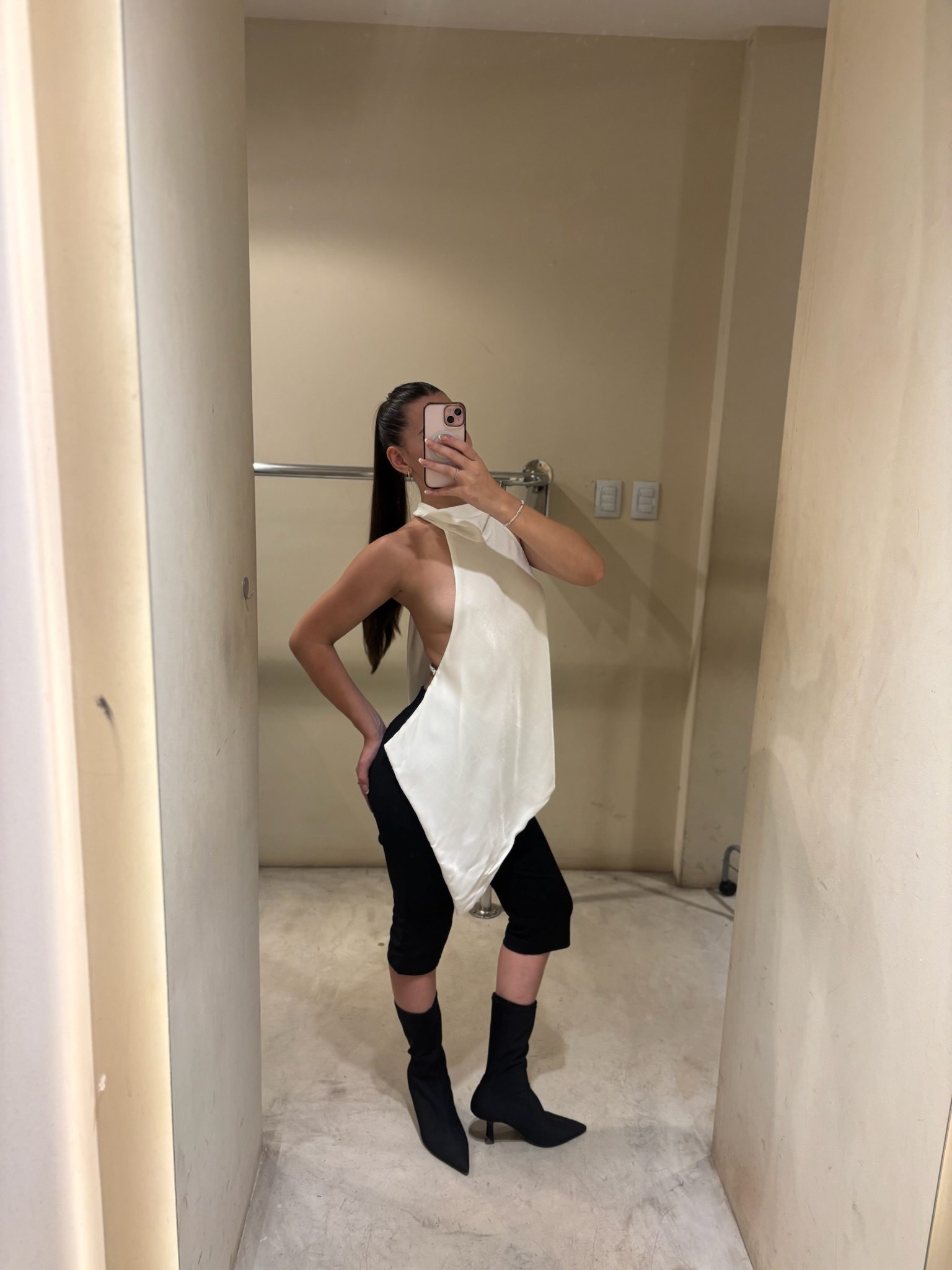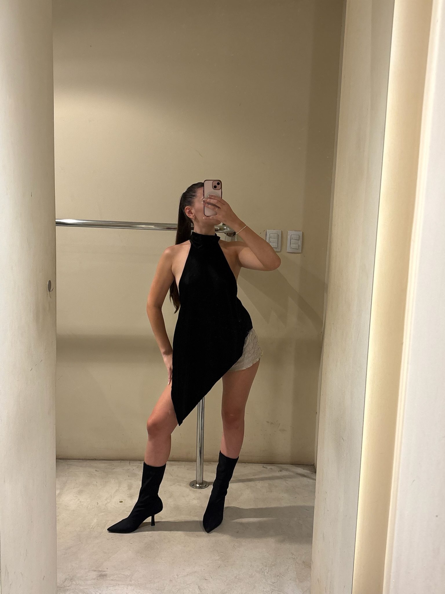 Top ajustado con cuello tortuga, confeccionado en tela suave elastizada, ideal para looks de media estación.