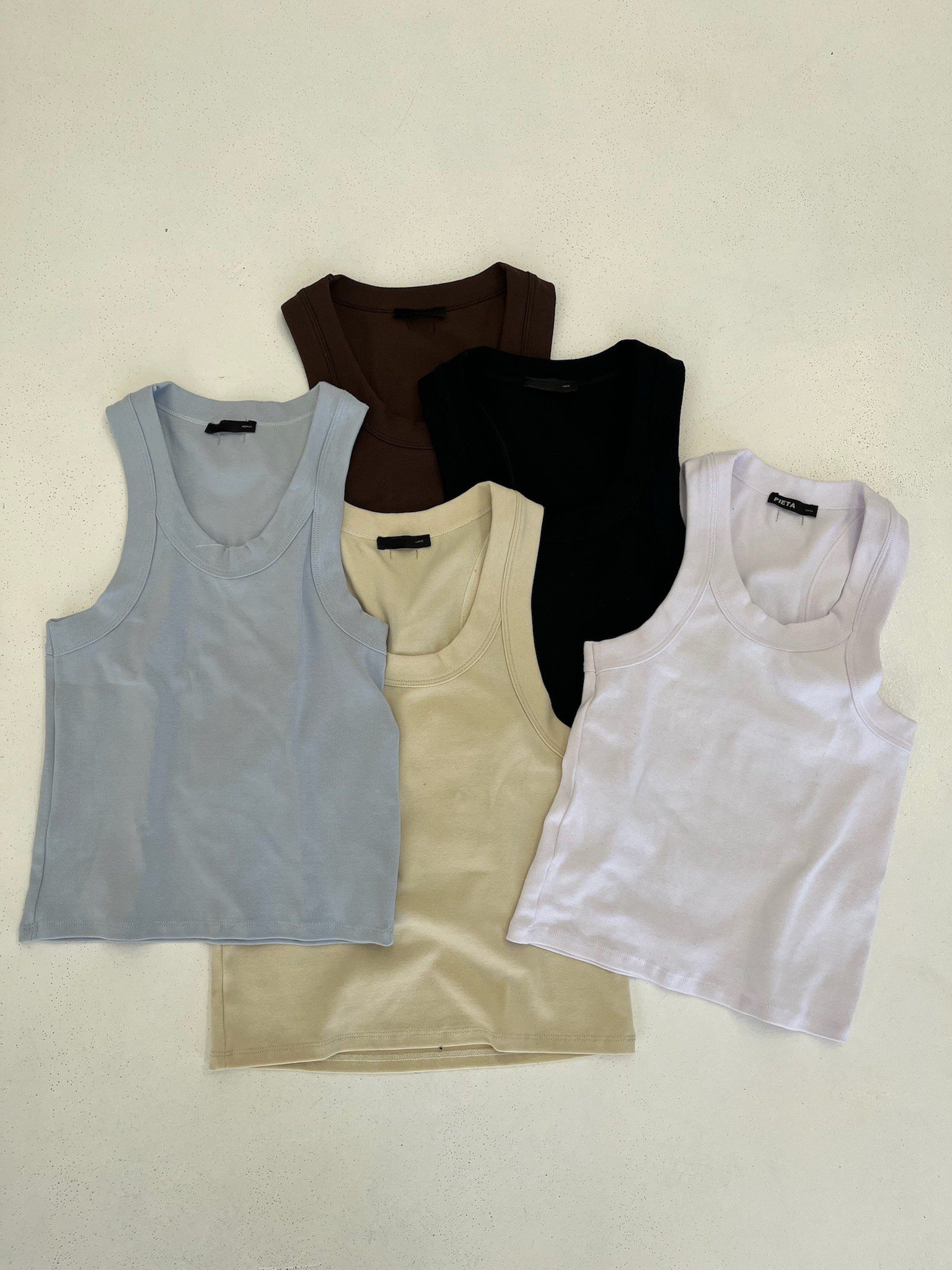 El Top Gina es una prenda de diseño corto. Presenta un lazo ajustable en el frente que se puede anudar. Sus volados en los hombros le otorgan un movimiento que lo hace distintivo. Es un top versátil para un look casual de verano o para combinar con otras prendas.