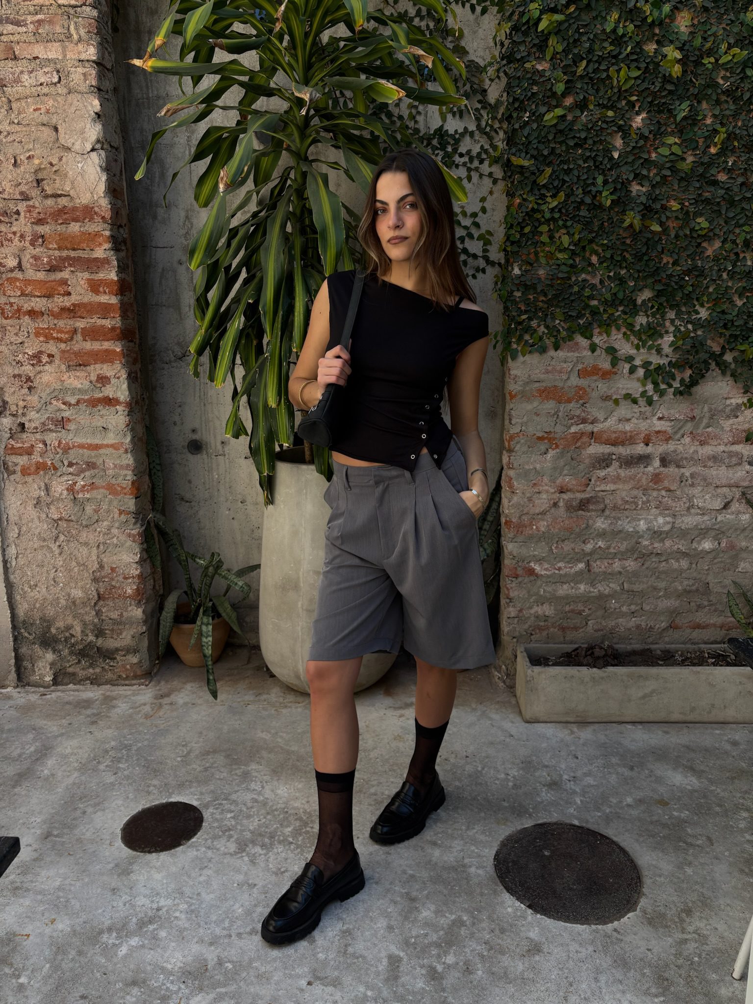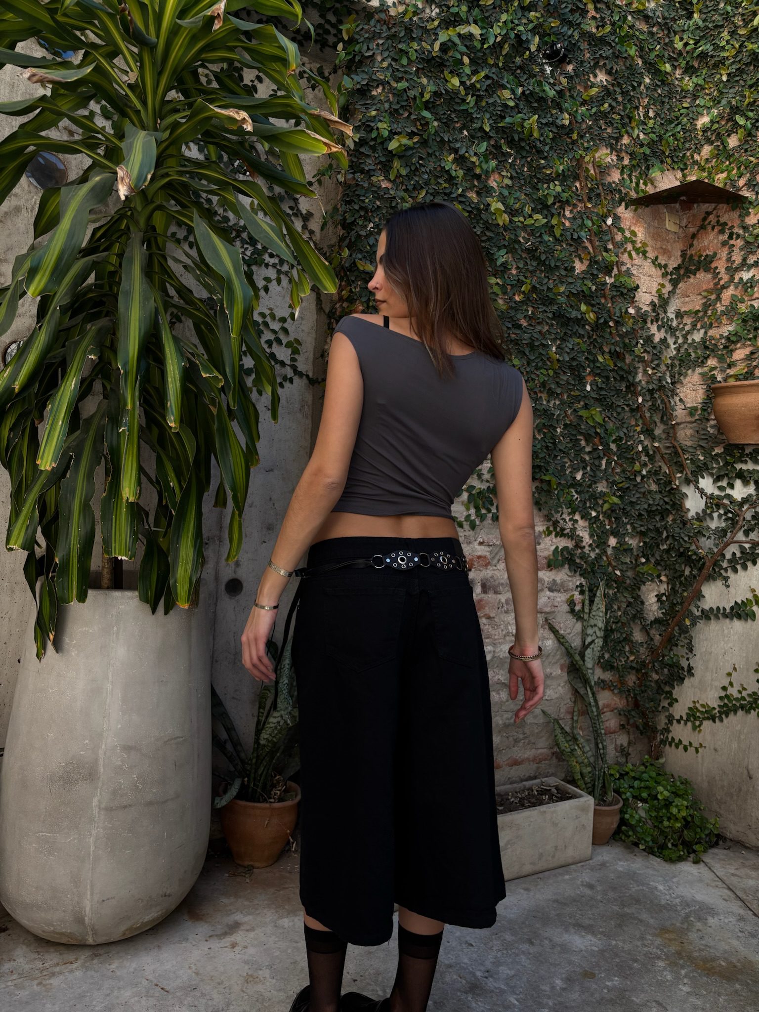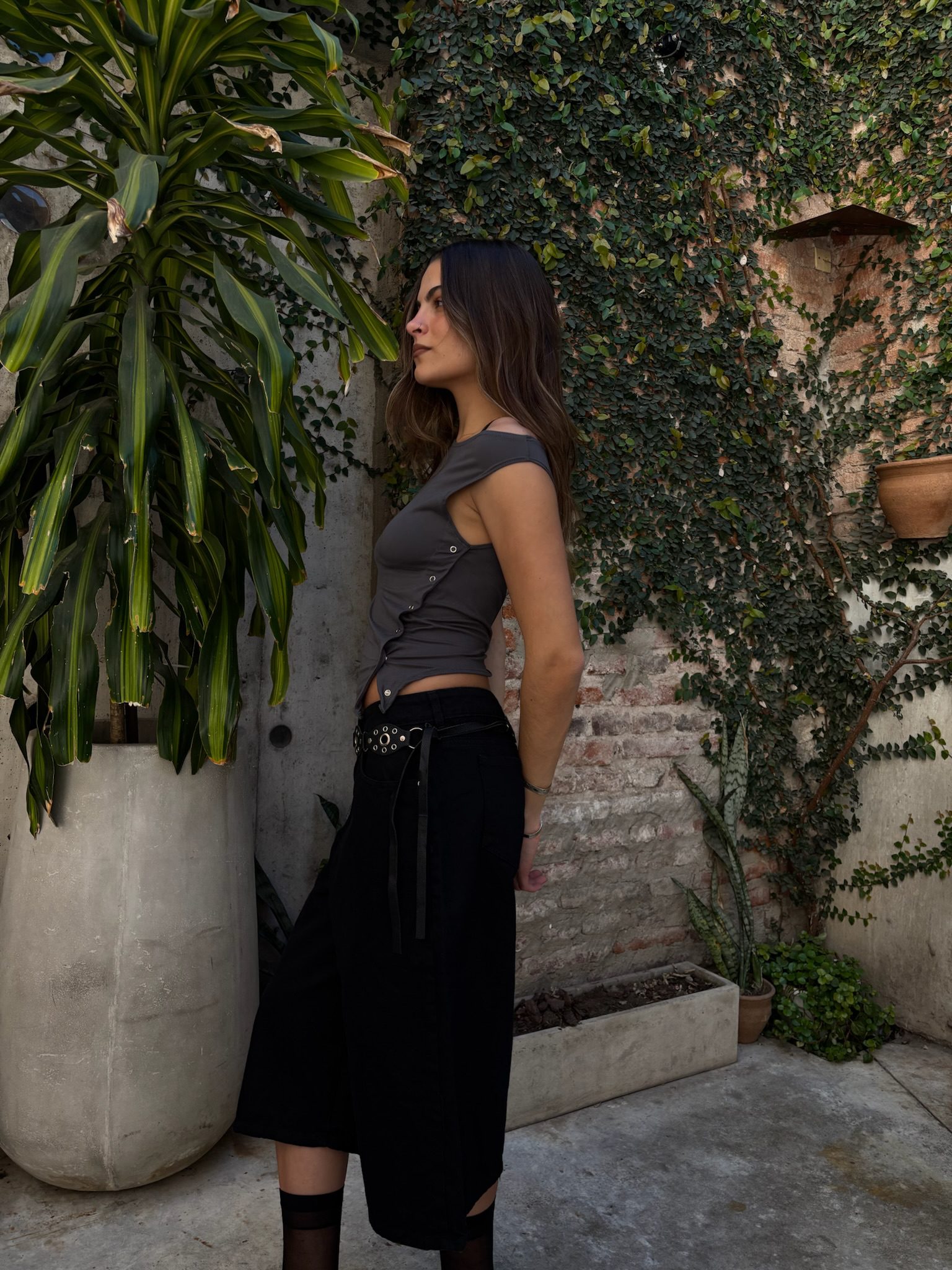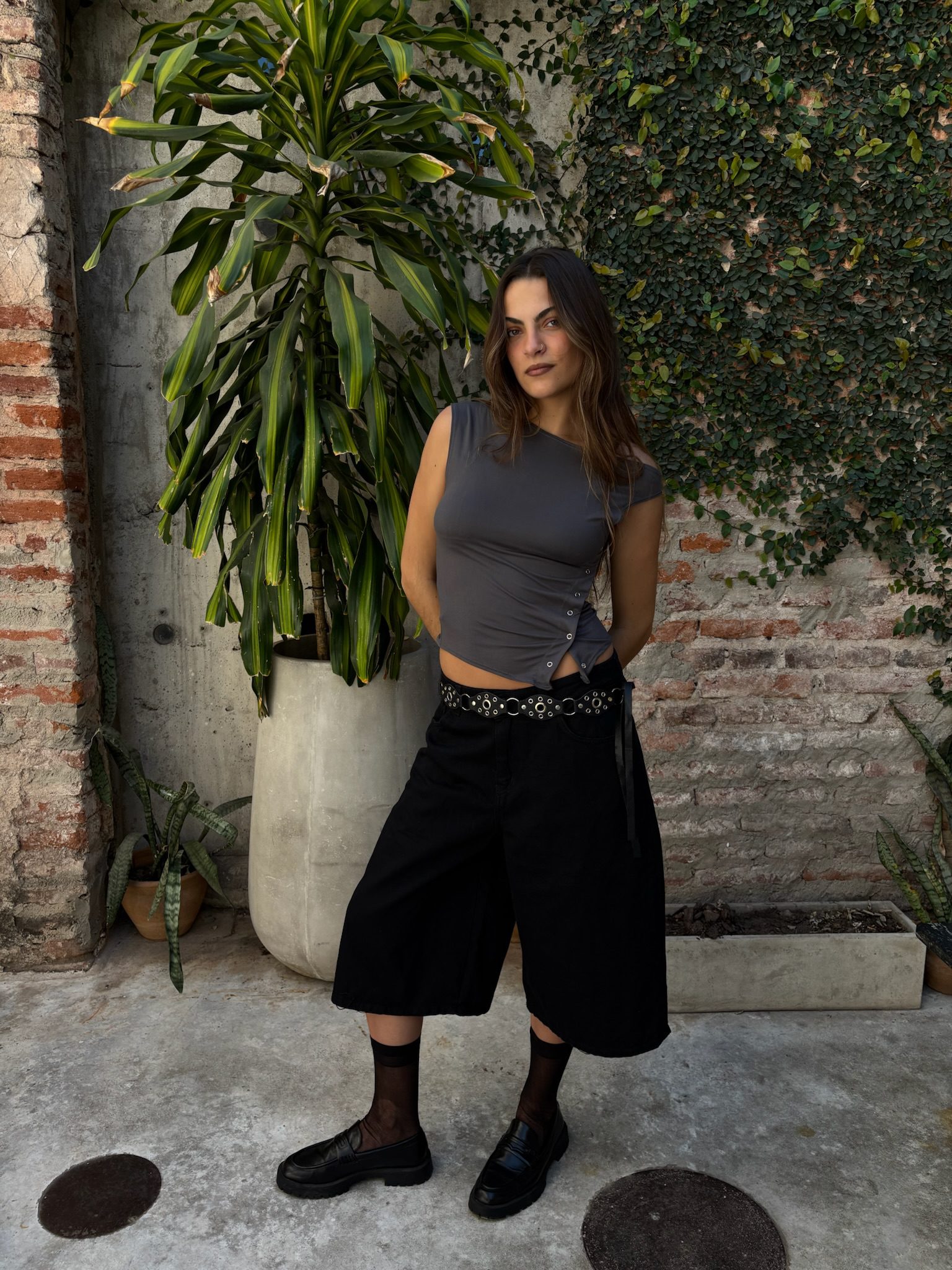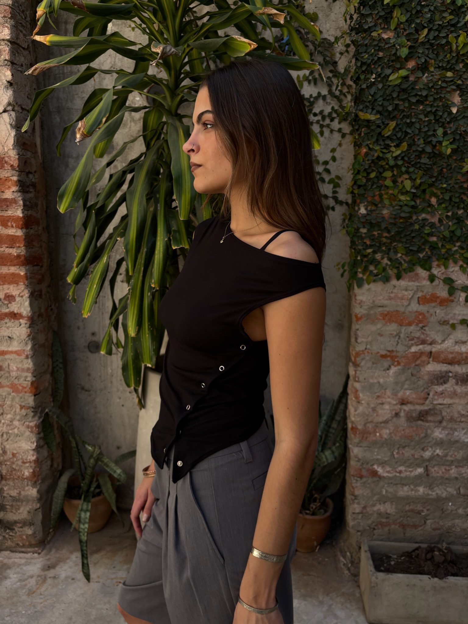 El Top Óvalos es la prenda perfecta para armar looks que te hagan sentir única y con mucha actitud. Confeccionado en un tejido de rib super cómodo y con un diseño de un solo hombro, es el top ideal para llevar solo o para usar como base de tus outfits más audaces. Es versátil y sexy, perfecto para un look de noche, una salida de día o un festival de música. Con esta pieza, vas a sentirte poderosa y con toda la onda que te caracteriza.