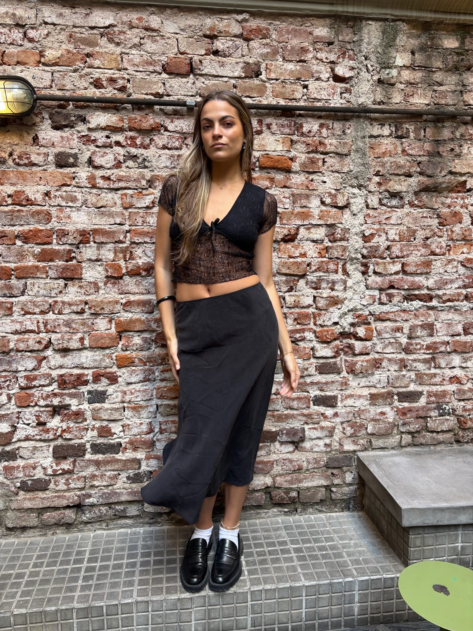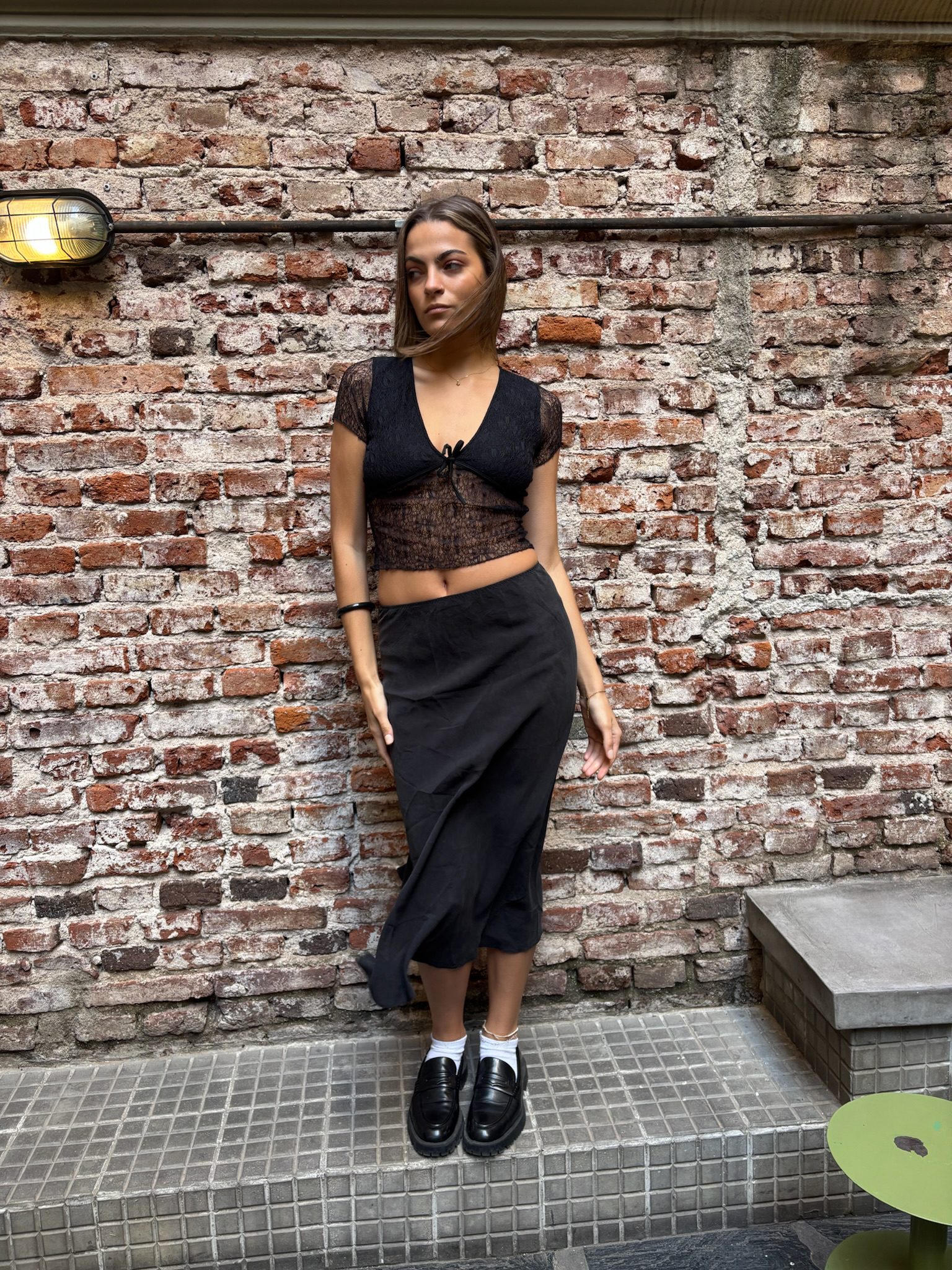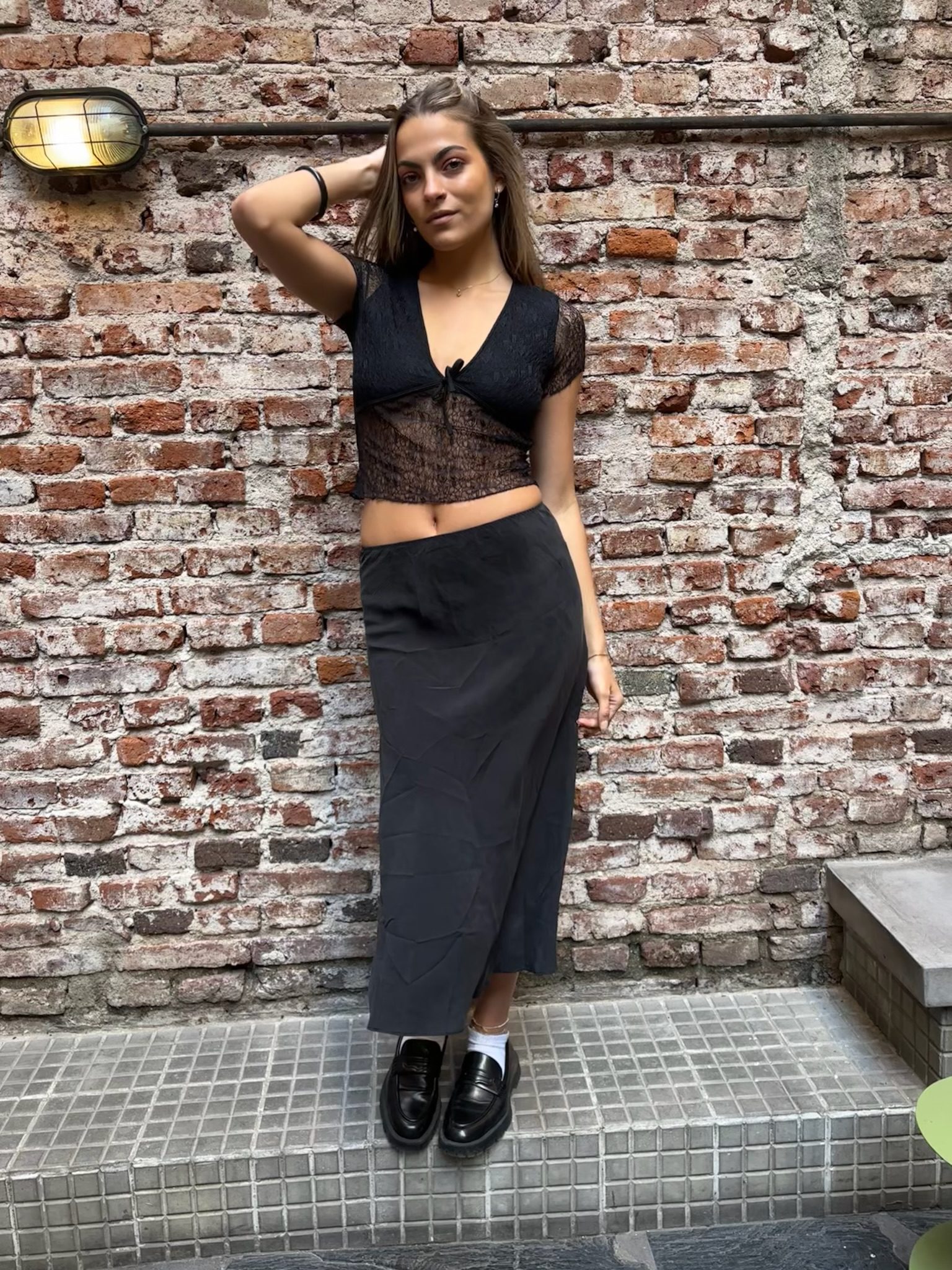 El Top Ribon es la pieza de Overwild que captura la tendencia balletcore y la reinterpreta con el toque edgy característico de la marca. Es un top delicado, pero con la suficiente textura para crear un impacto visual.