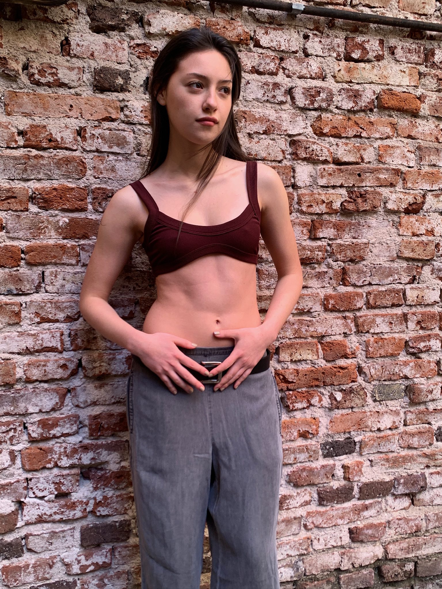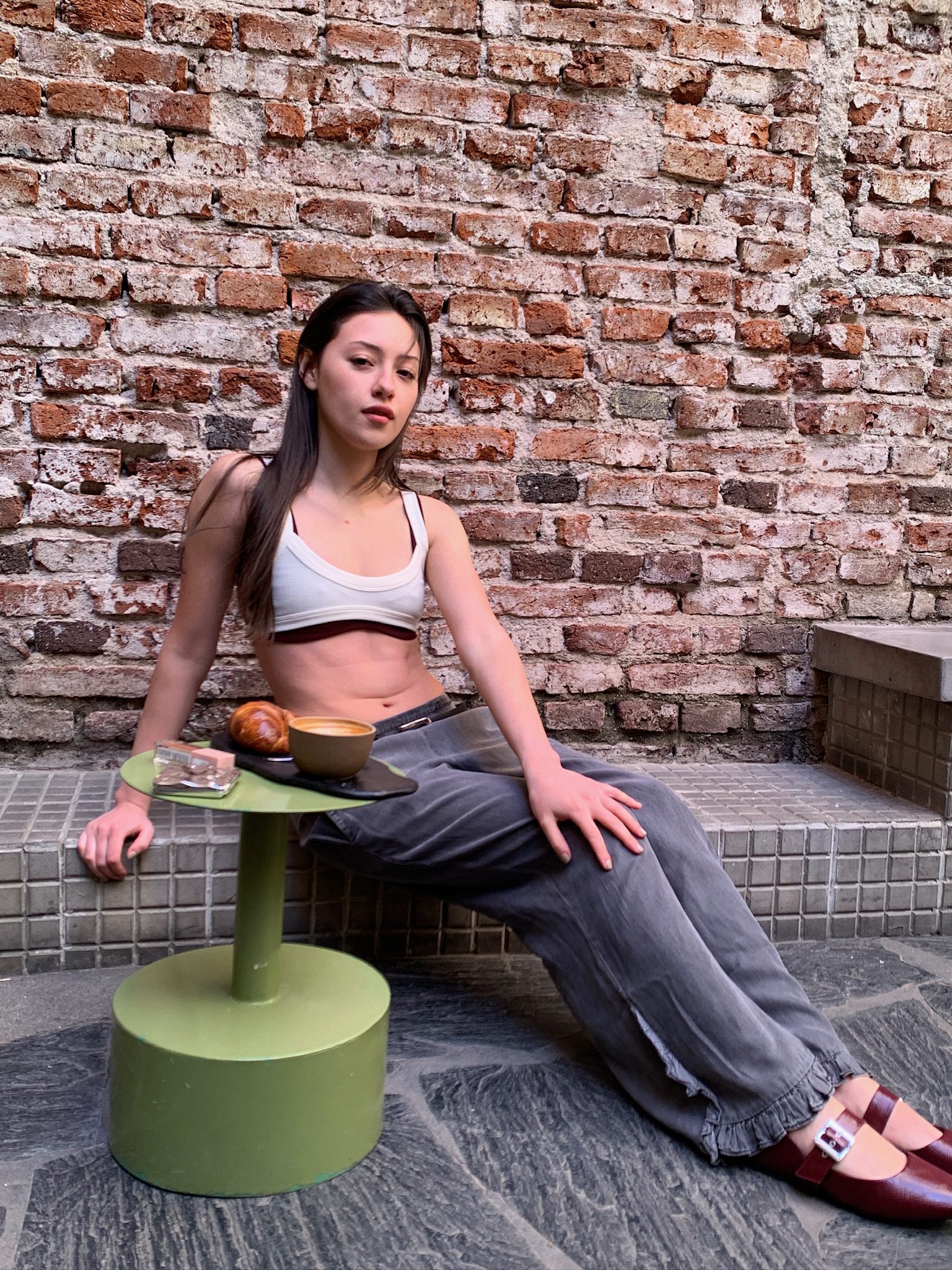 Confeccionado en un tejido elástico que se adapta a tu cuerpo, es el top ideal para llevar con bases de tiro bajo o alta.
