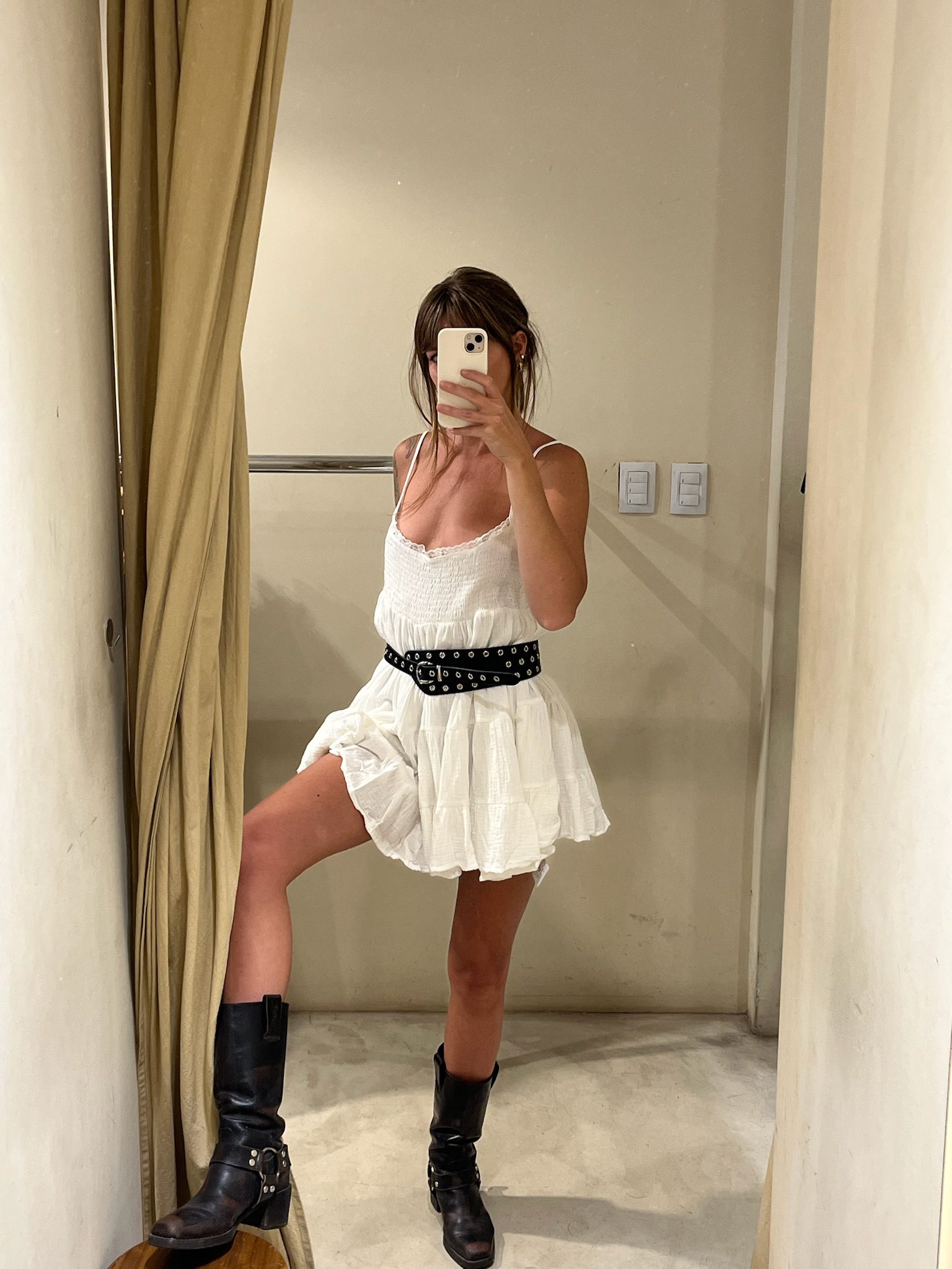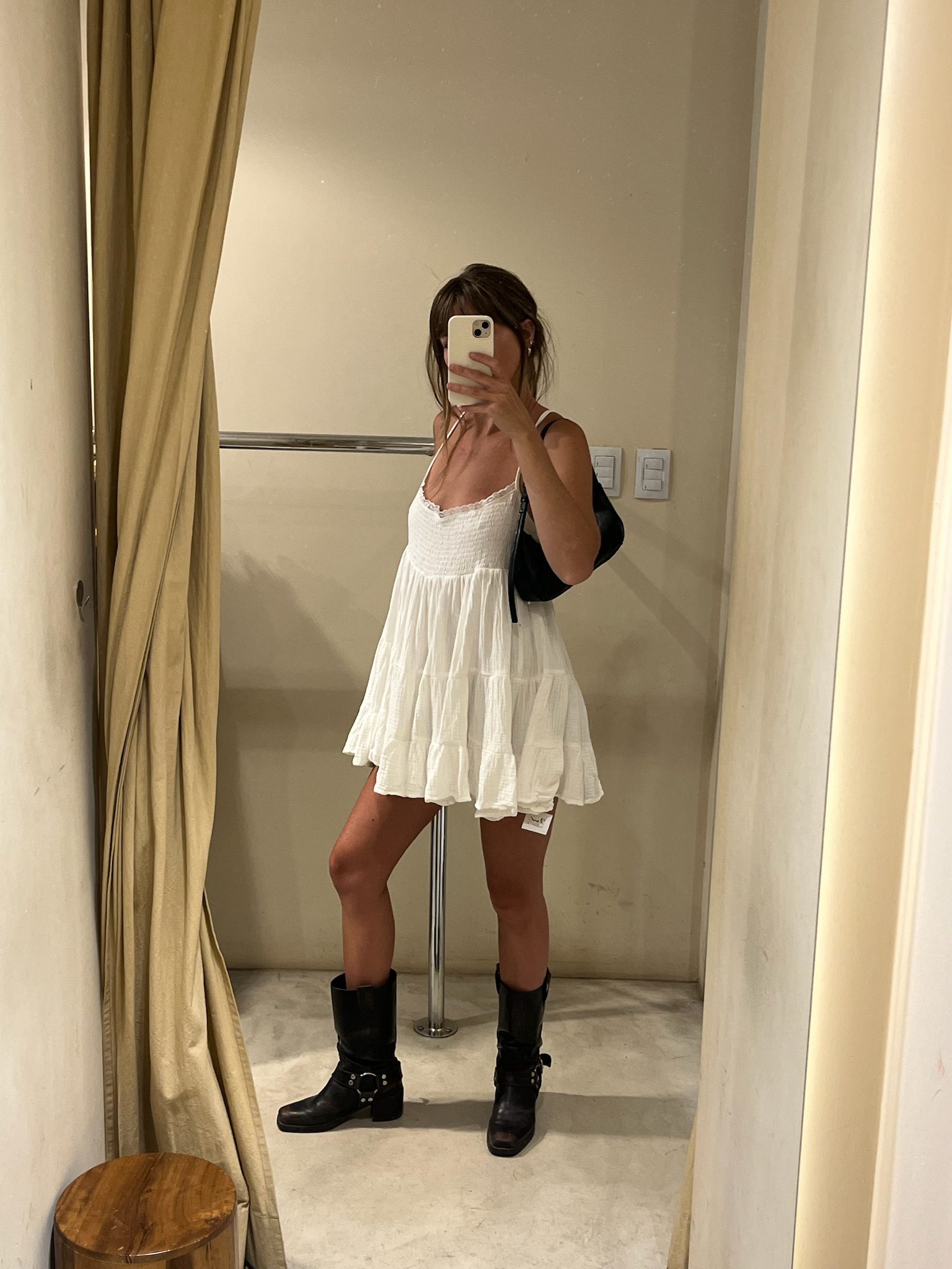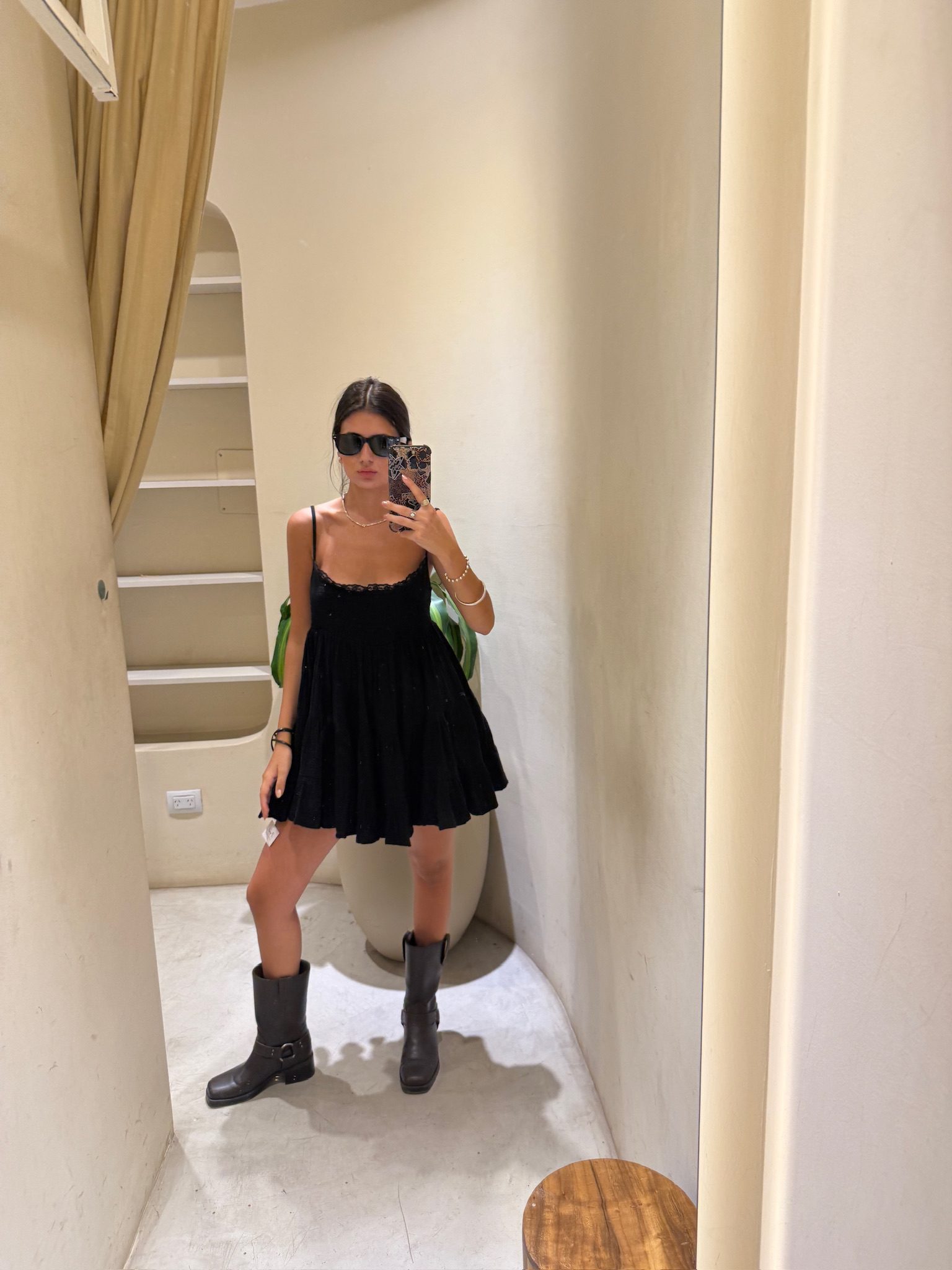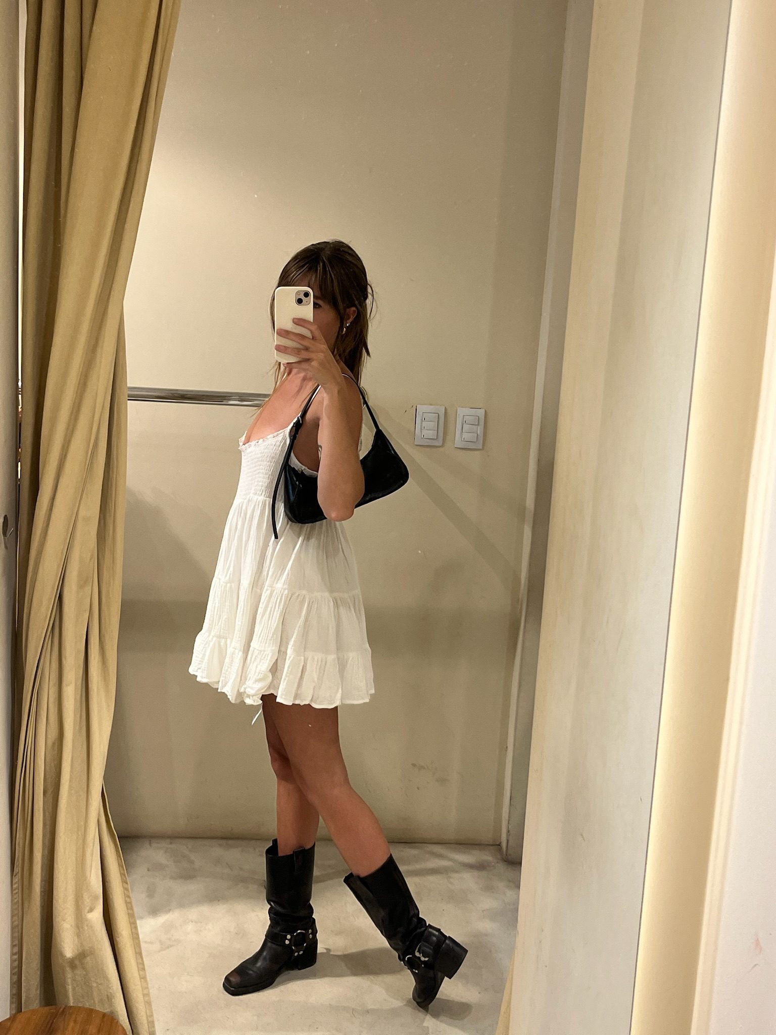 Vestido corto estilo babydoll con smock (elástico fruncido) en el busto y tiras finas regulables, ideal para el verano. Confeccionado en tela liviana con cuerpo y volados en la falda que le dan movimiento y un aire romántico y dulce. Súper fresco y versátil