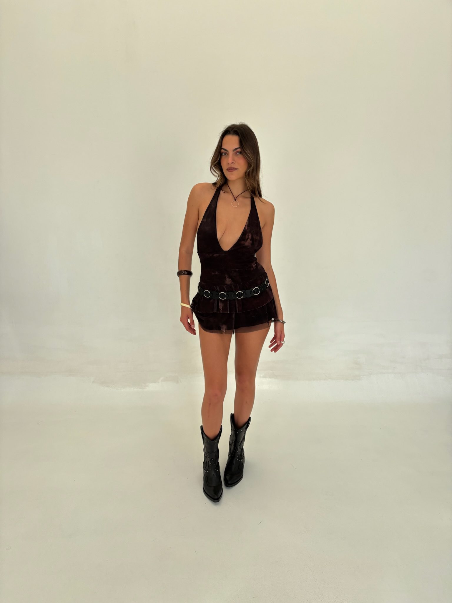 Imaginate esta pieza como el centro de tu look, lista para una noche de fiesta o un evento especial. Combinalo con unas botas rockeras y un cinturón llamativo para un estilo audaz, o con unas sandalias minimalistas para un enfoque más chic. El Vestido Gaia es para las que quieren ser el centro de atención, celebrando su estilo con confianza y esa vibra overwild que lo dice todo.