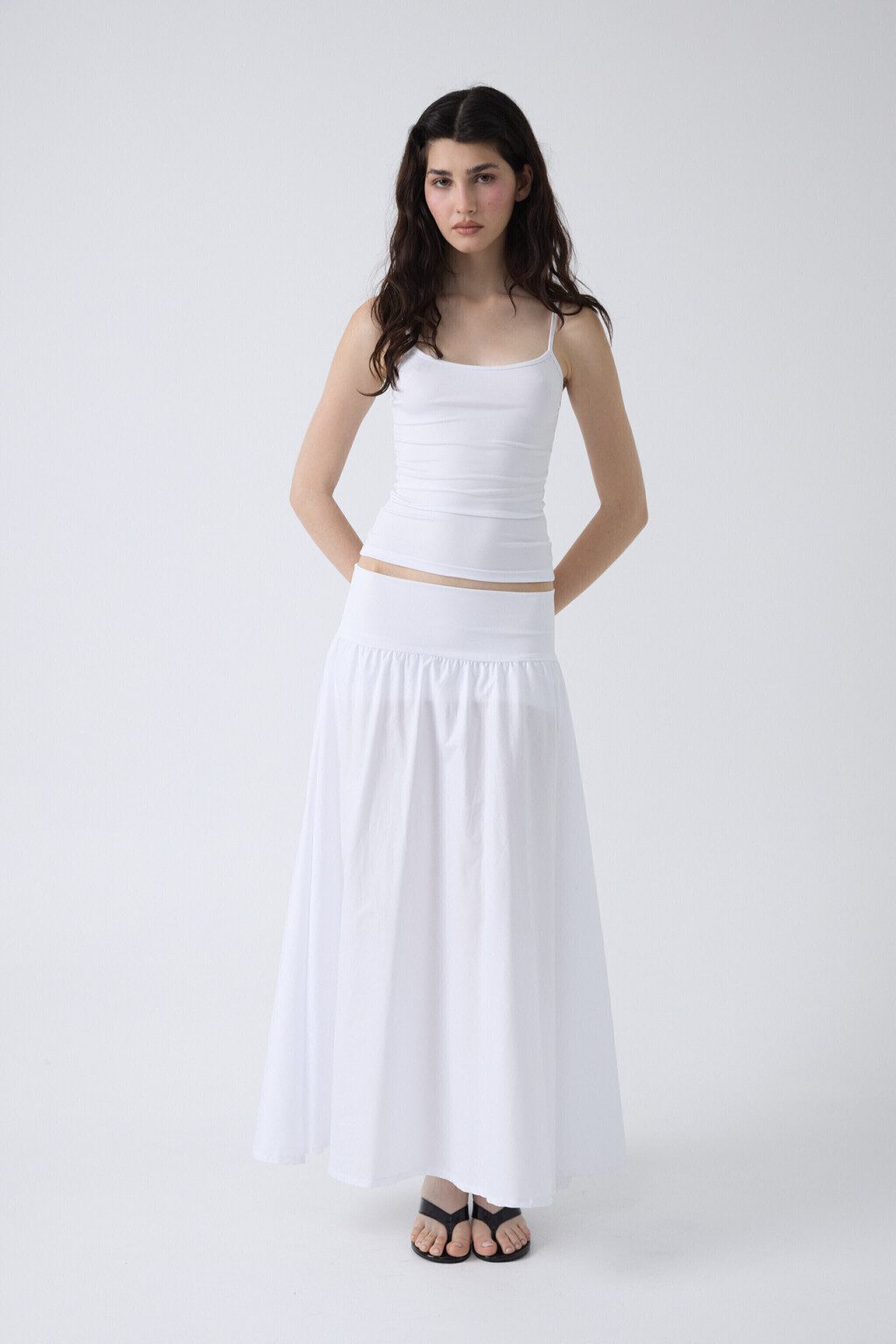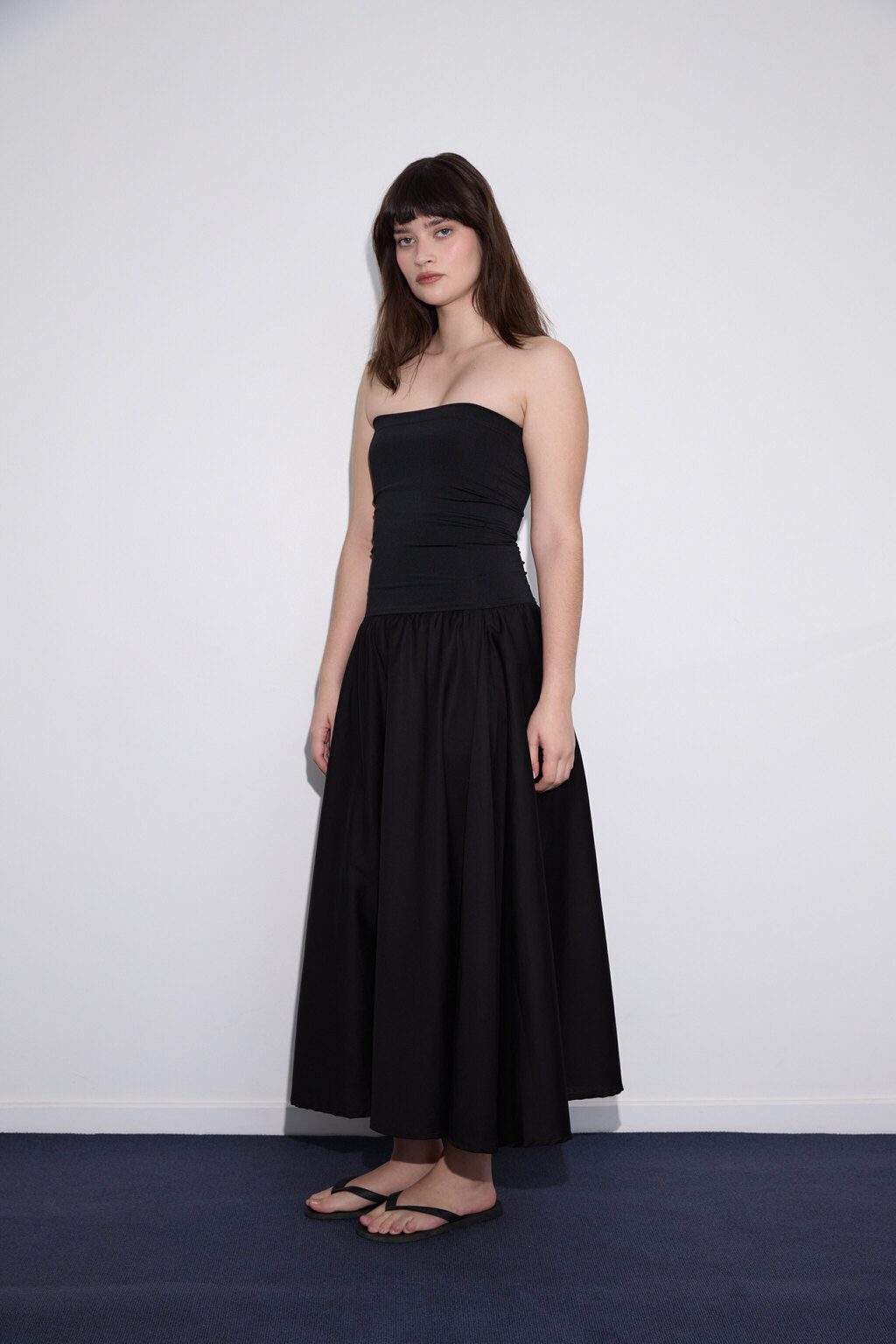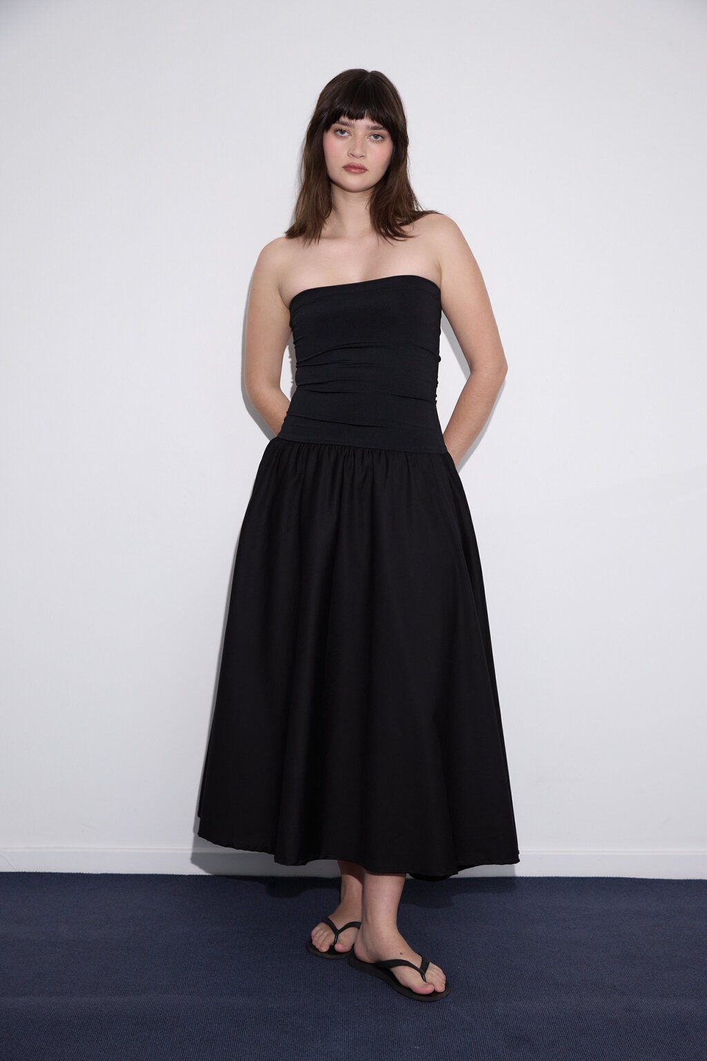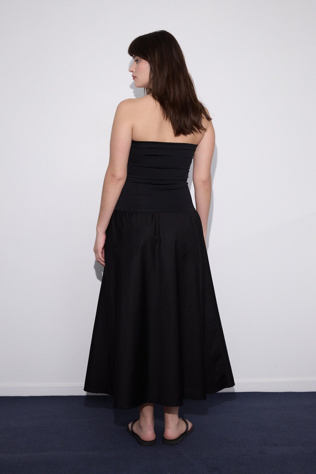 La versatilidad definitiva en una sola prenda: usalo como vestido strapless o como pollera midi. Este diseño inteligente combina un busto de microfibra elastizada que sostiene y estiliza sin comprimir, con una falda en poplín de algodón que aporta estructura, movimiento natural y cero transparencia. Una silueta limpia y clásica que no se baja, no marca y se adapta a distintos cuerpos. Ideal para resolver tu look de día o noche con practicidad y estilo sin esfuerzo.