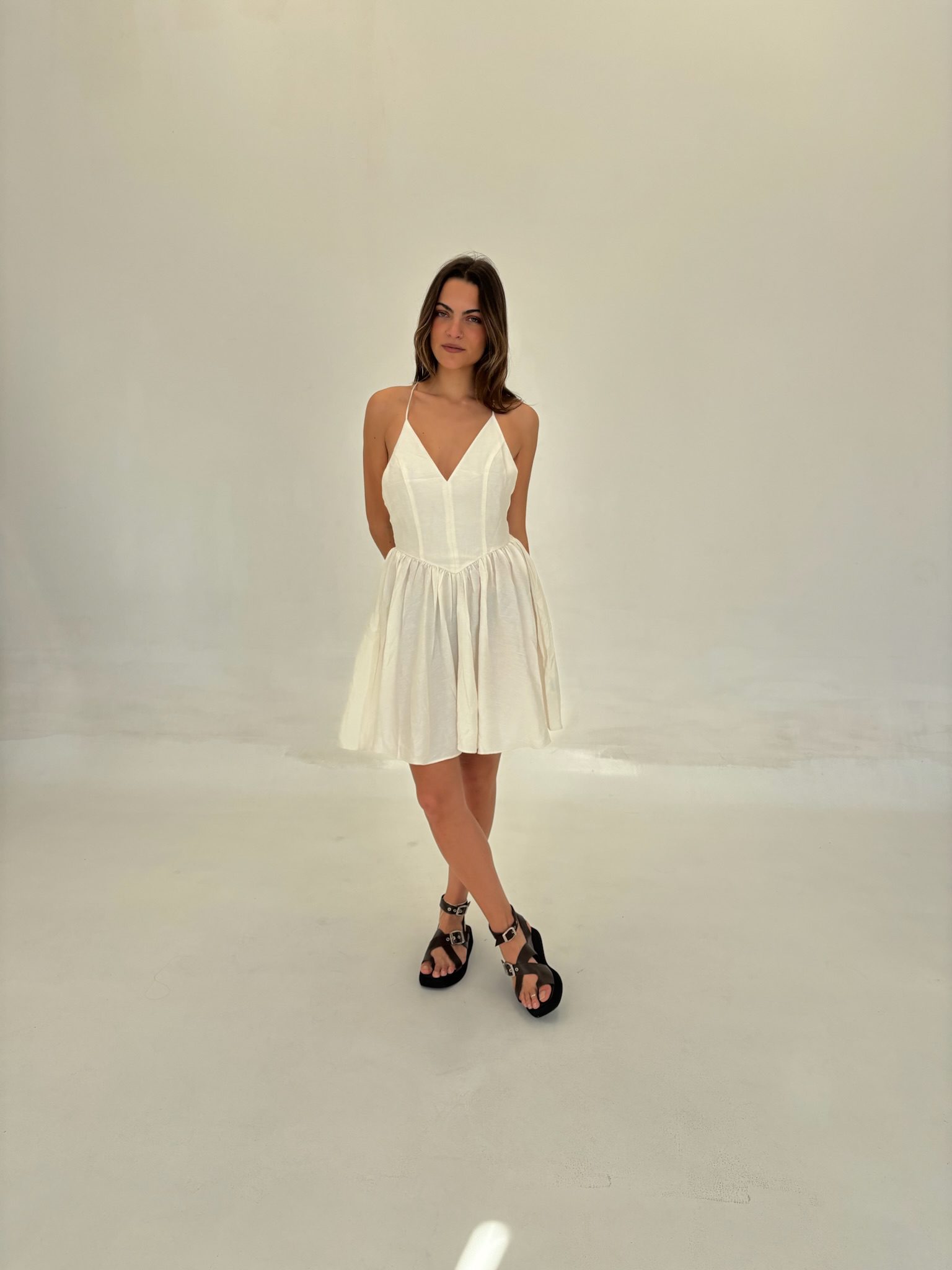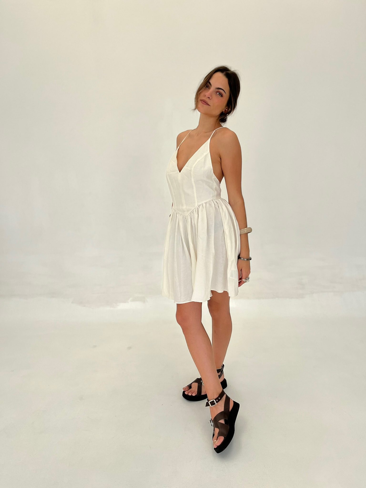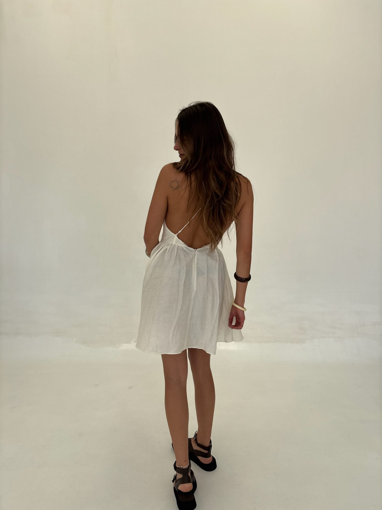 Es un vestido versátil que podés combinar de mil maneras. Para un look más casual y urbano, usalo con zapatillas o sandalias con plataforma. Si querés un estilo más audaz, sumale unas botas o una campera de cuero. El color blanco es un lienzo en blanco para que lo combines con tus accesorios y prendas favoritas, creando un outfit que hable 100% de vos.